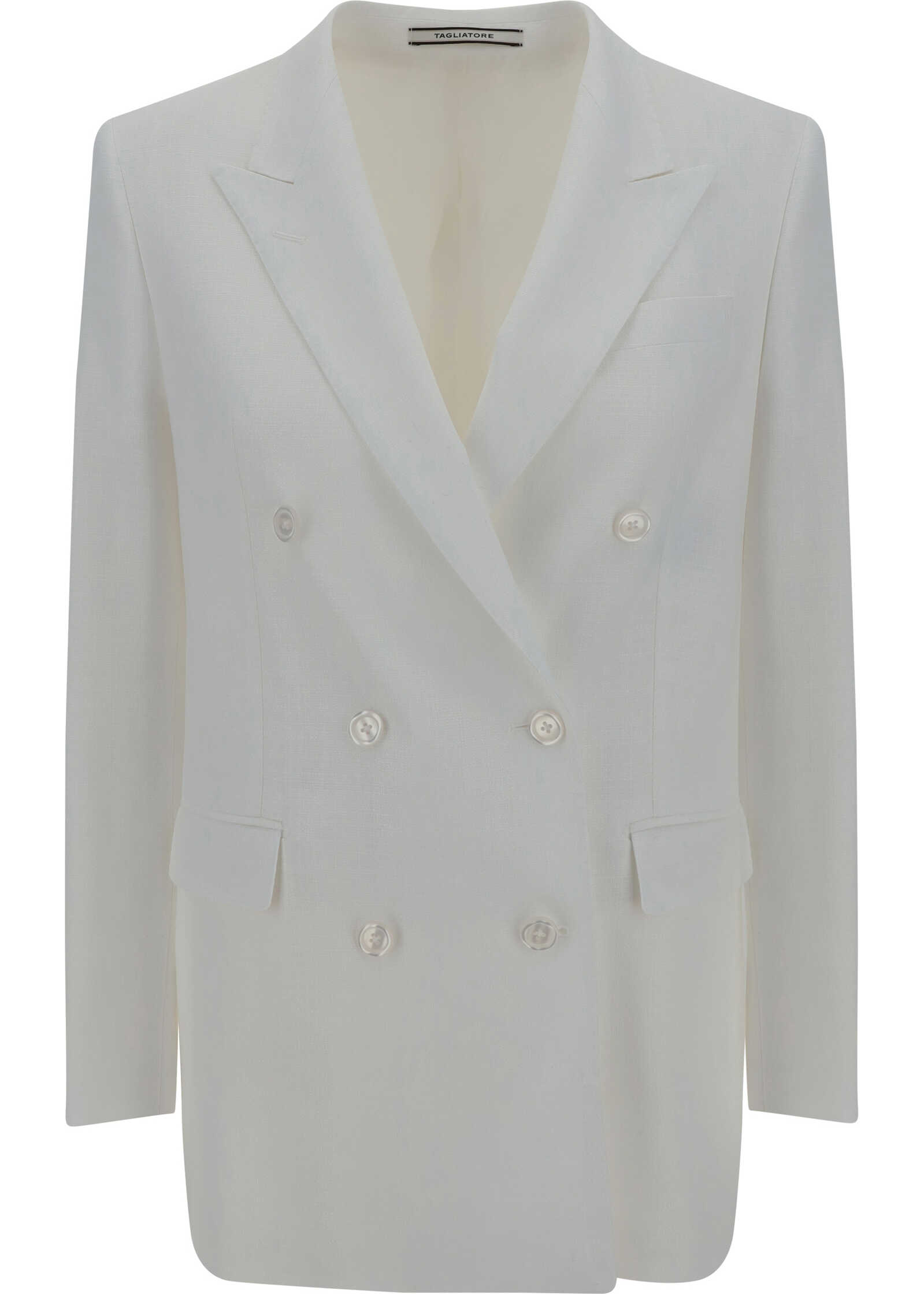 Jasmine Blazer Jacket by Tagliatore, double-breasted front closure with matching buttons, classic lapels, two welt pockets with side flaps, one front welt pocket, back slit, structured shoulders, oversize fit.