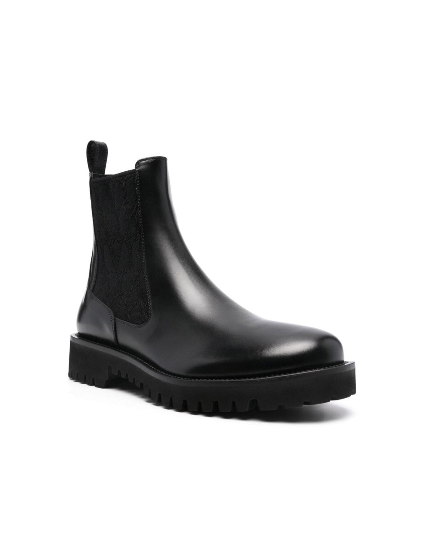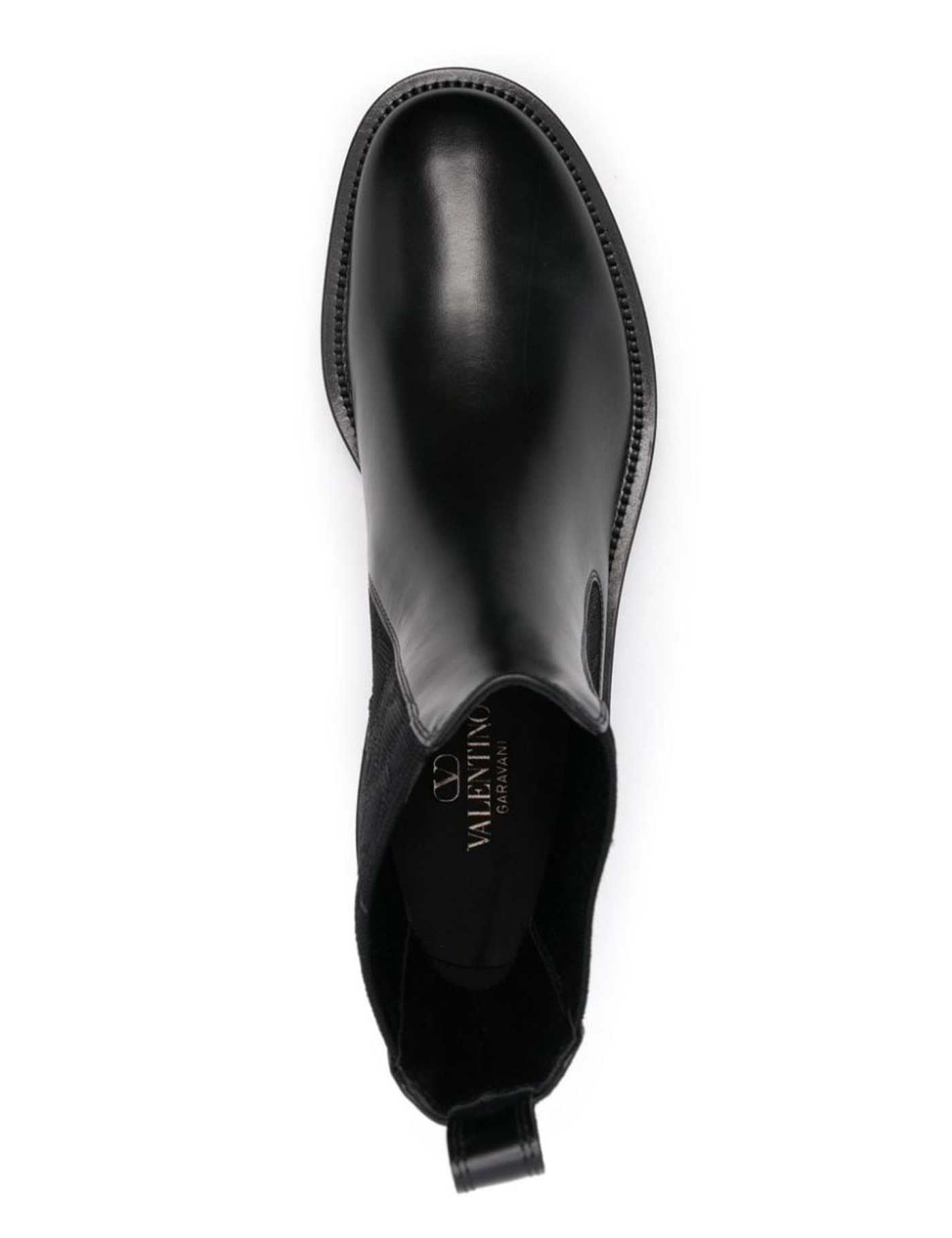 Calfskin Toile Iconographe Boots by Valentino Garavani, elasticized bands on side panels, leather pullback for fit support, knurled platform sole, elongated round toe.
