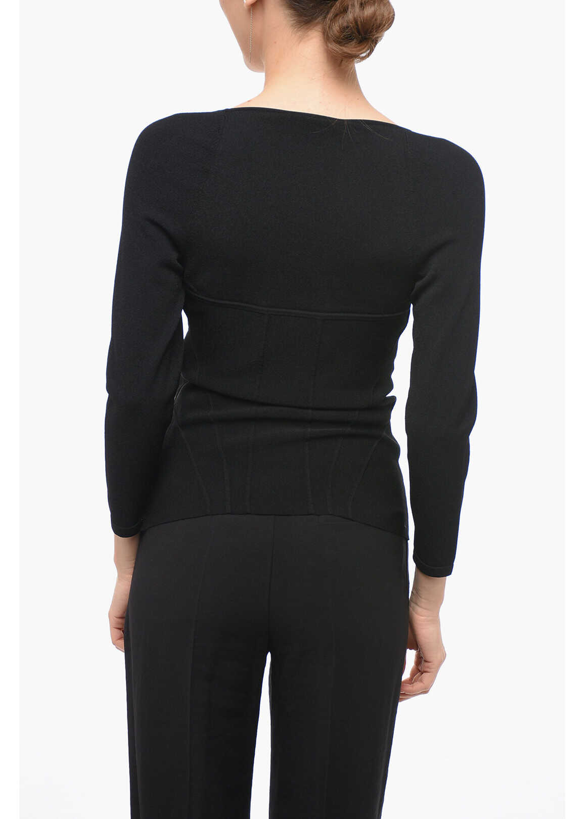 Long sleeves Light-weight knit Deep Black Made in Italy Spring-Summer Materials: 100%VI Product code: P582225 Model is wearing size M Model measurements Height: 175 cm Chest: 90 cm Waist: 67 cm Hips: 92 cm
