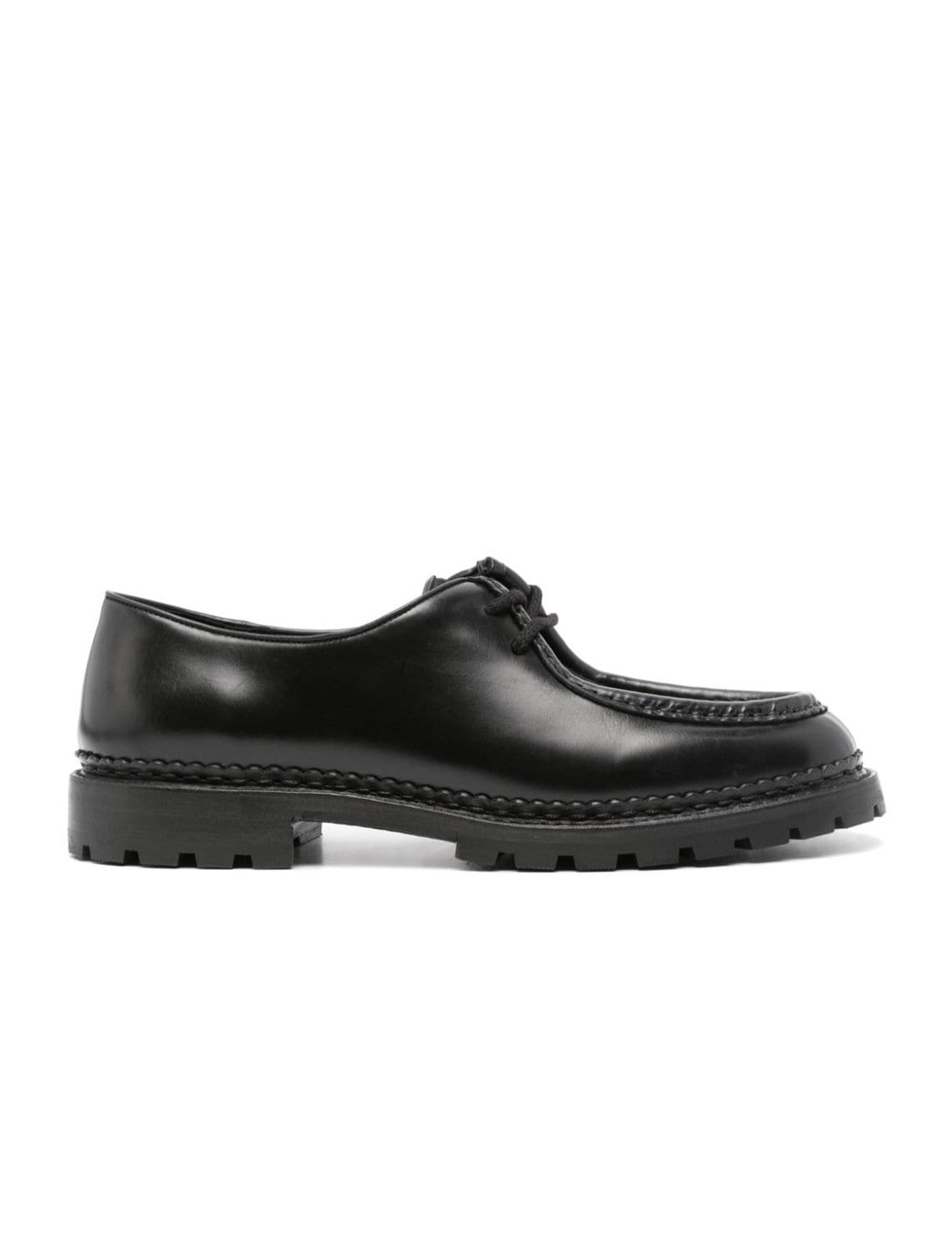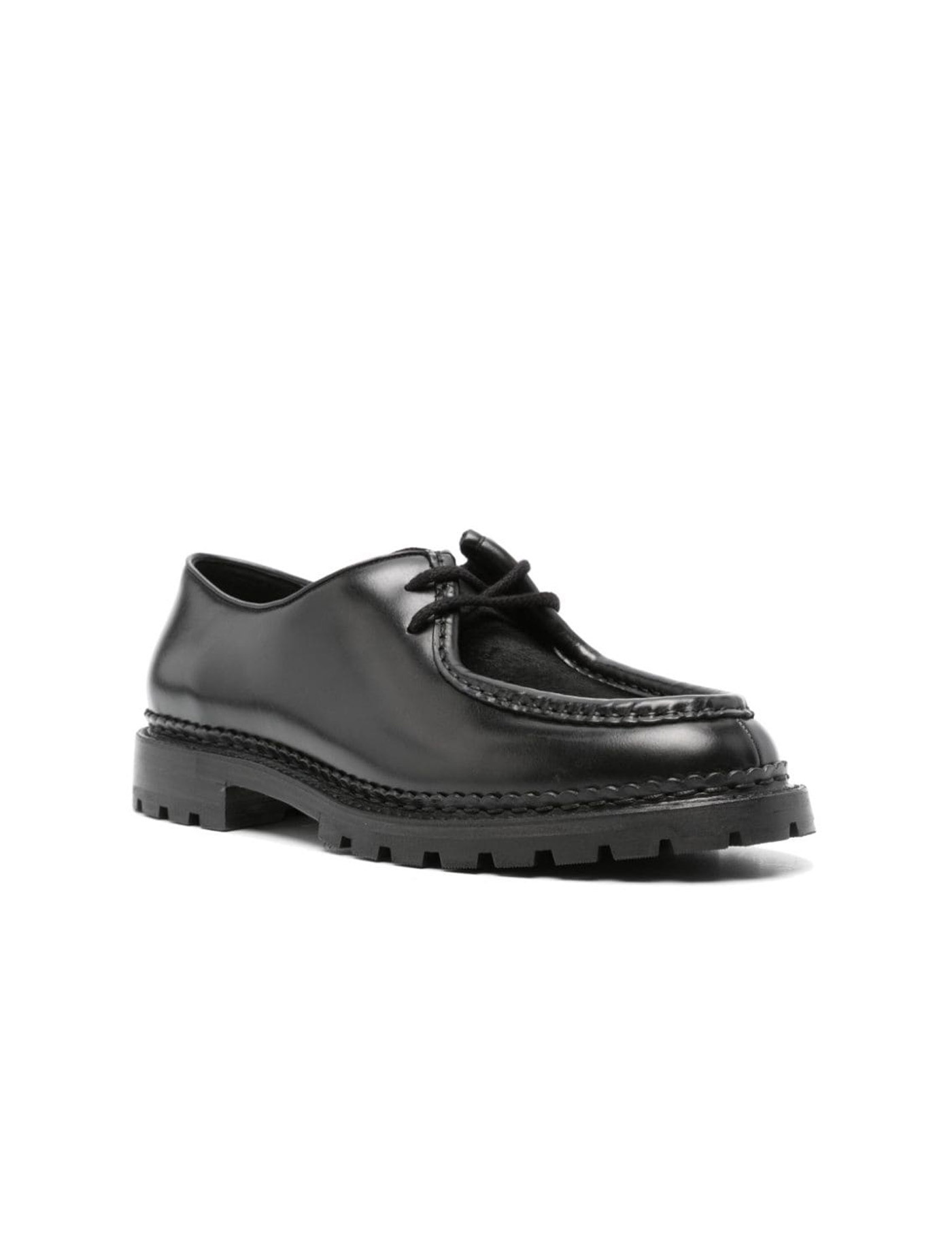 Black leather and calf hair lace-up shoes