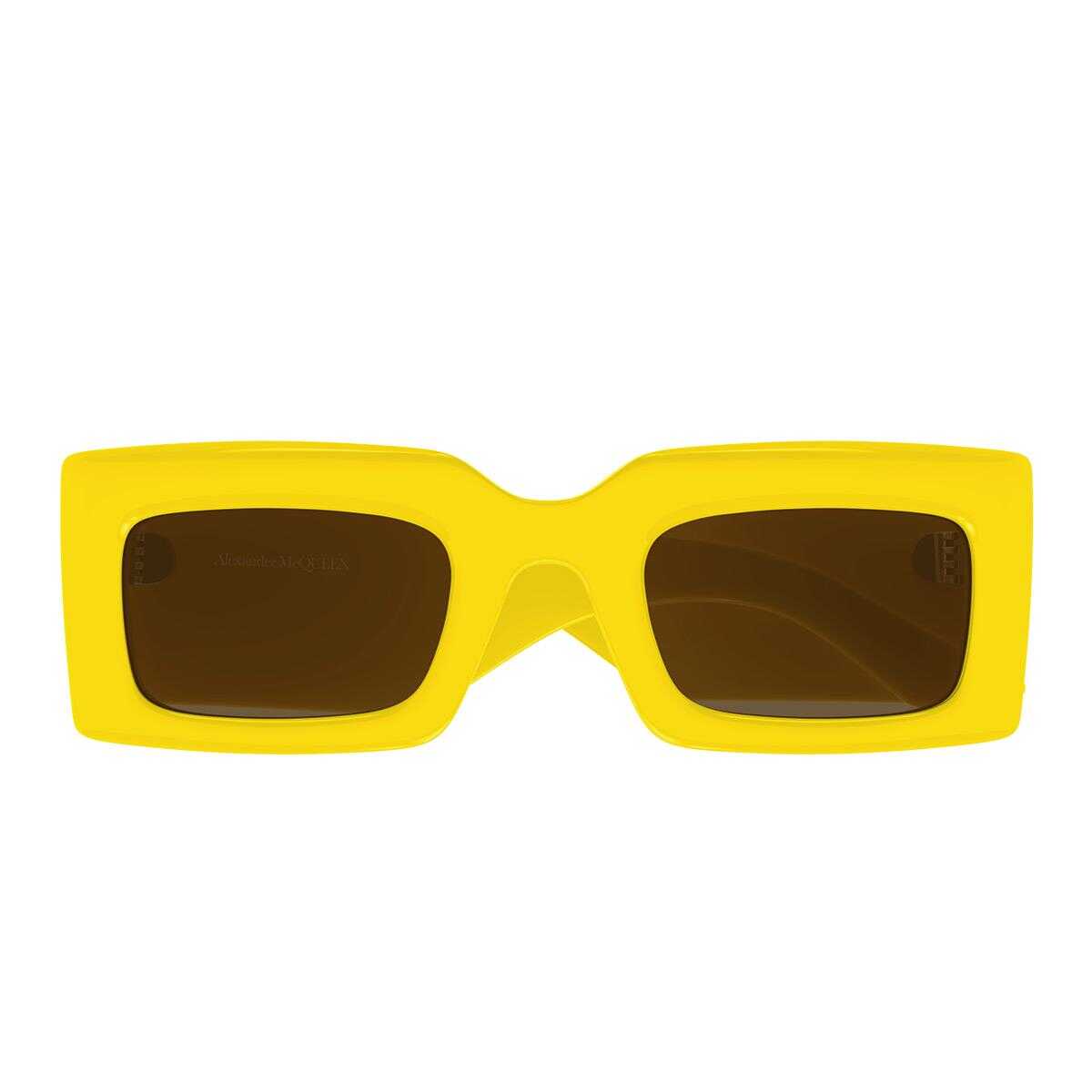 Sunglasses Alexander McQueen Yellow Brown Rectangle Acetate Women