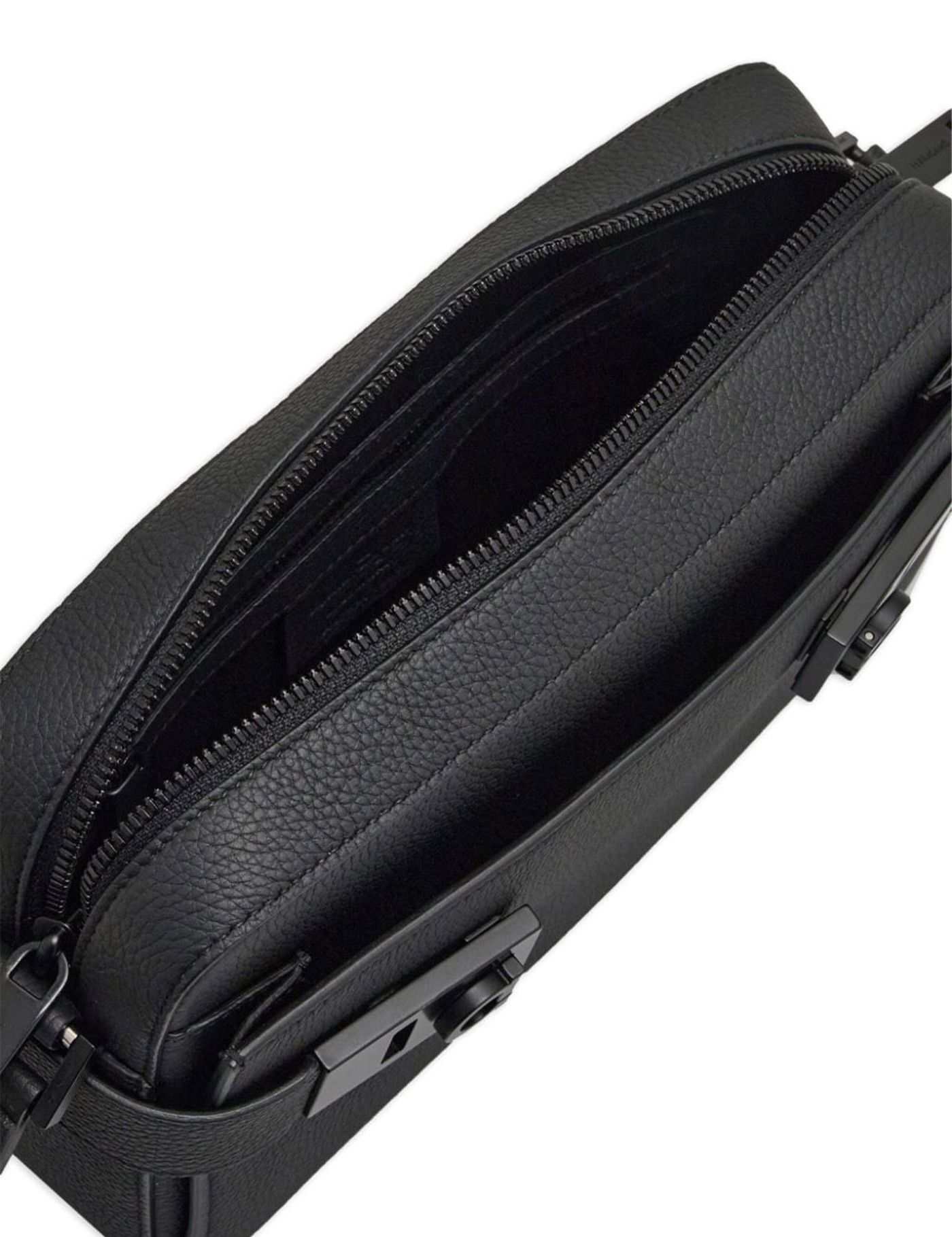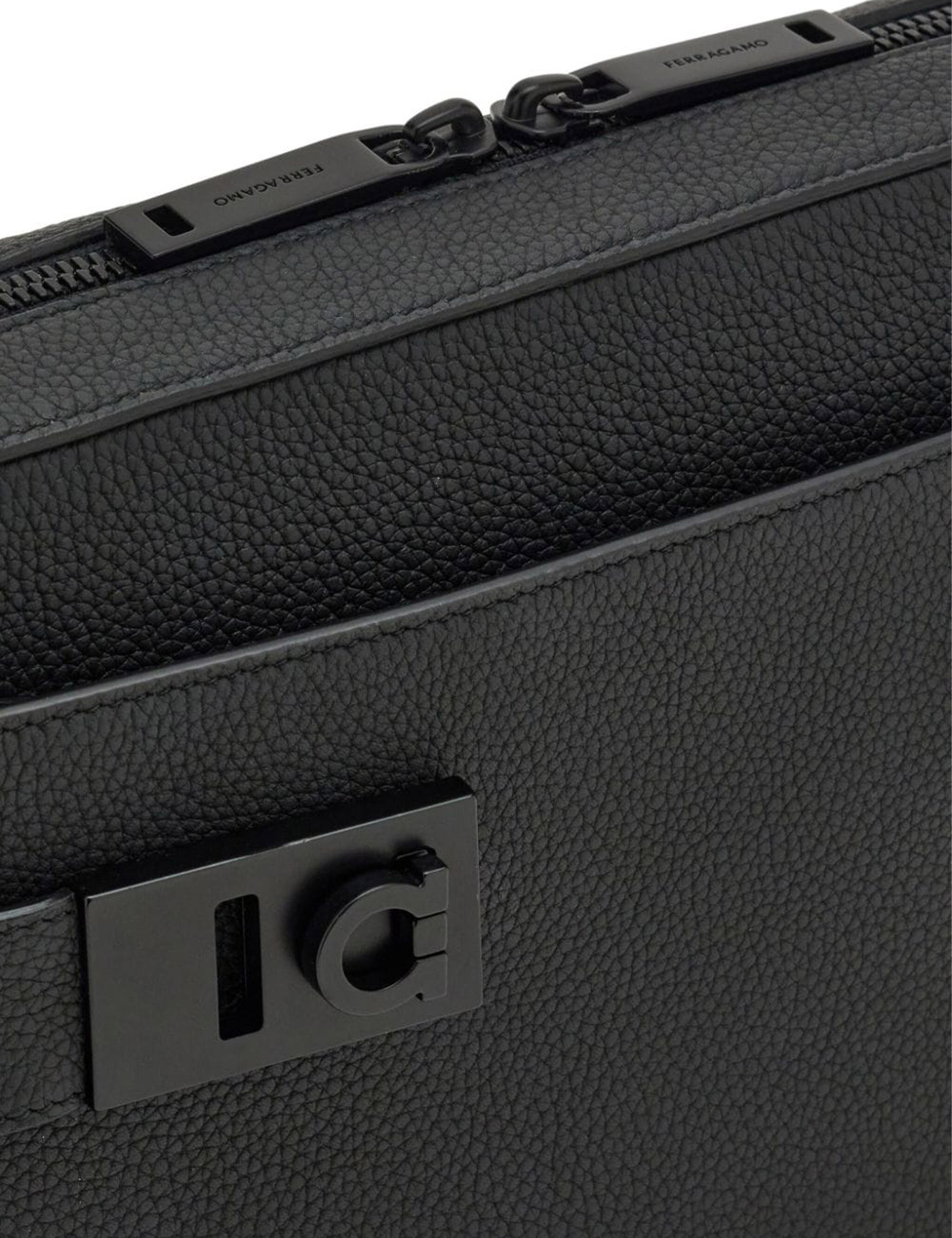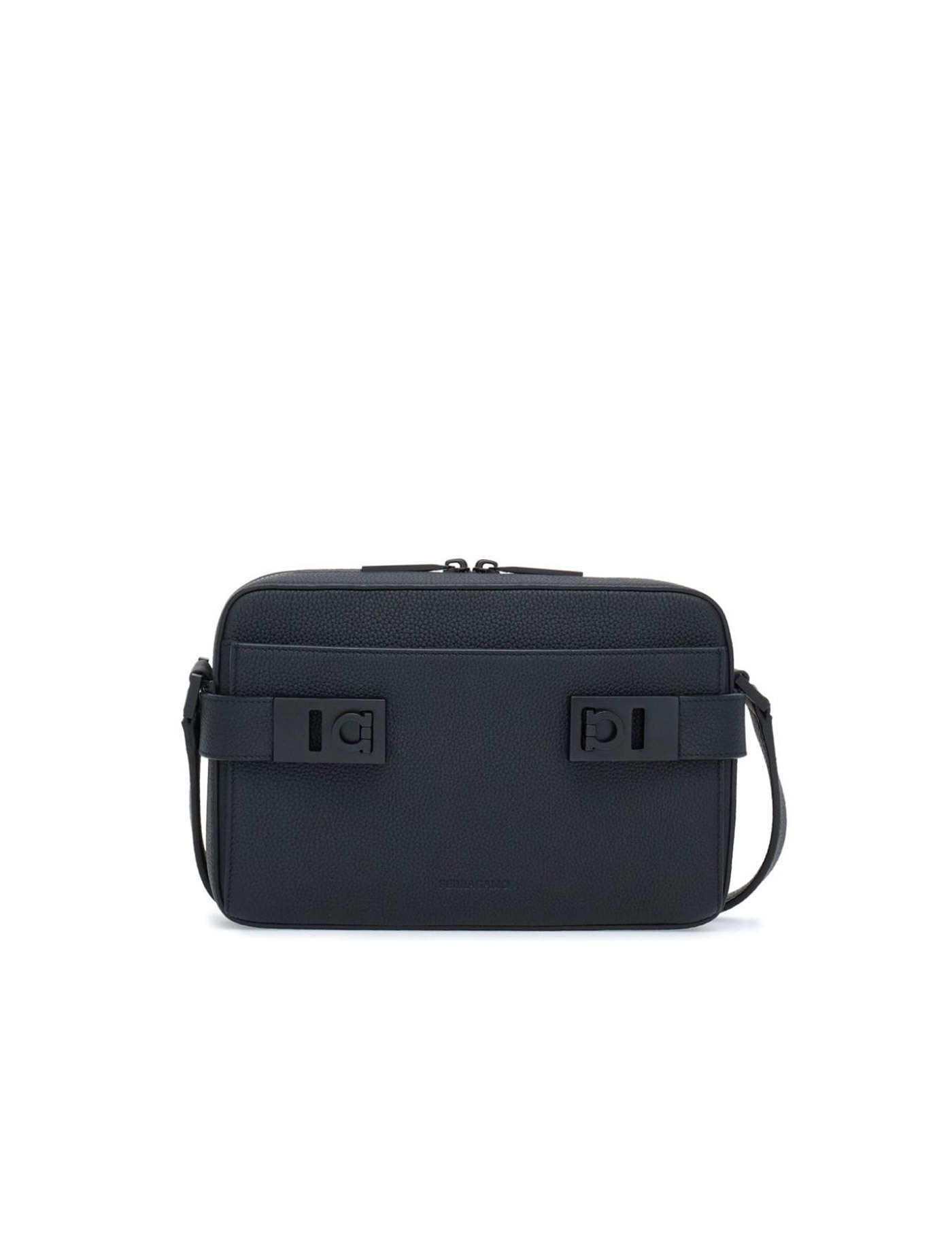 Black calf leather pebbled texture debossed logo to the front internal logo patch gancini buckle tonal stitching top zip fastening adjustable shoulder strap slip pocket to the front internal zip-fastening pocket main compartment