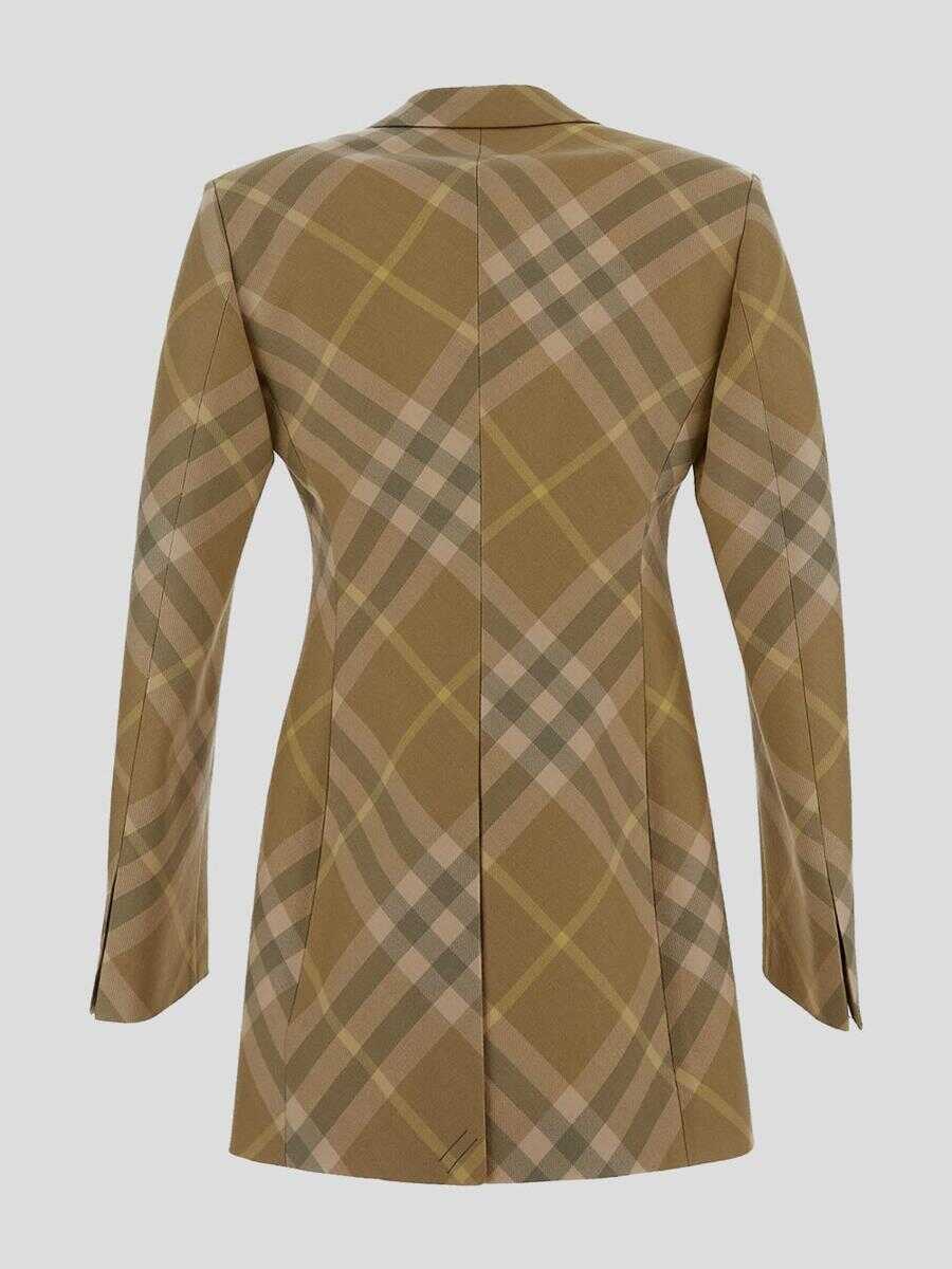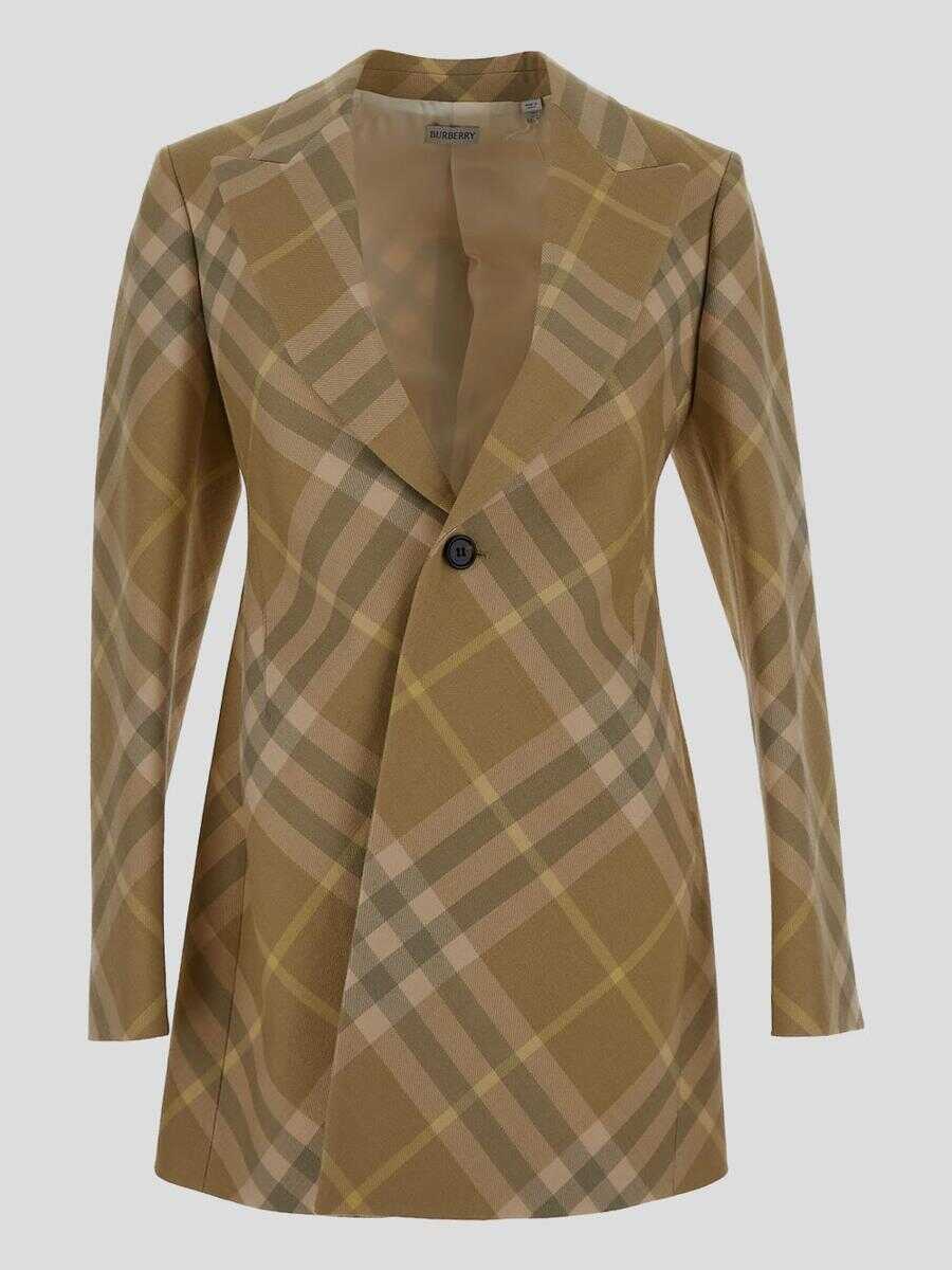 light olive green wool plaid check pattern tailored cut peak lapels front button fastening long sleeves straight hem