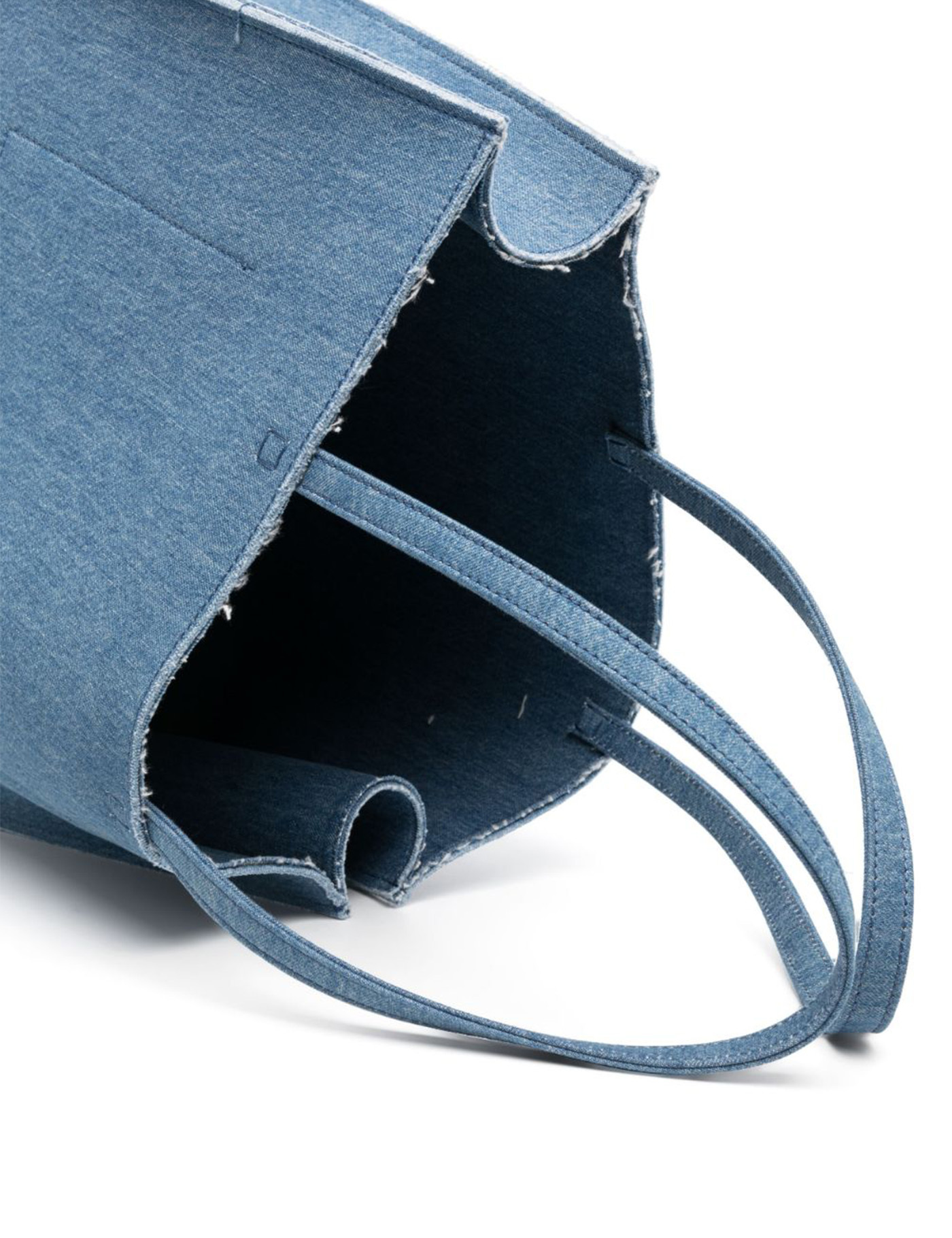 large G-Tote denim tote bag from Givenchy featuring blue, cotton, thin shoulder straps, logo print to the front, frayed detailing, open top, internal logo patch and internal patch pocket.