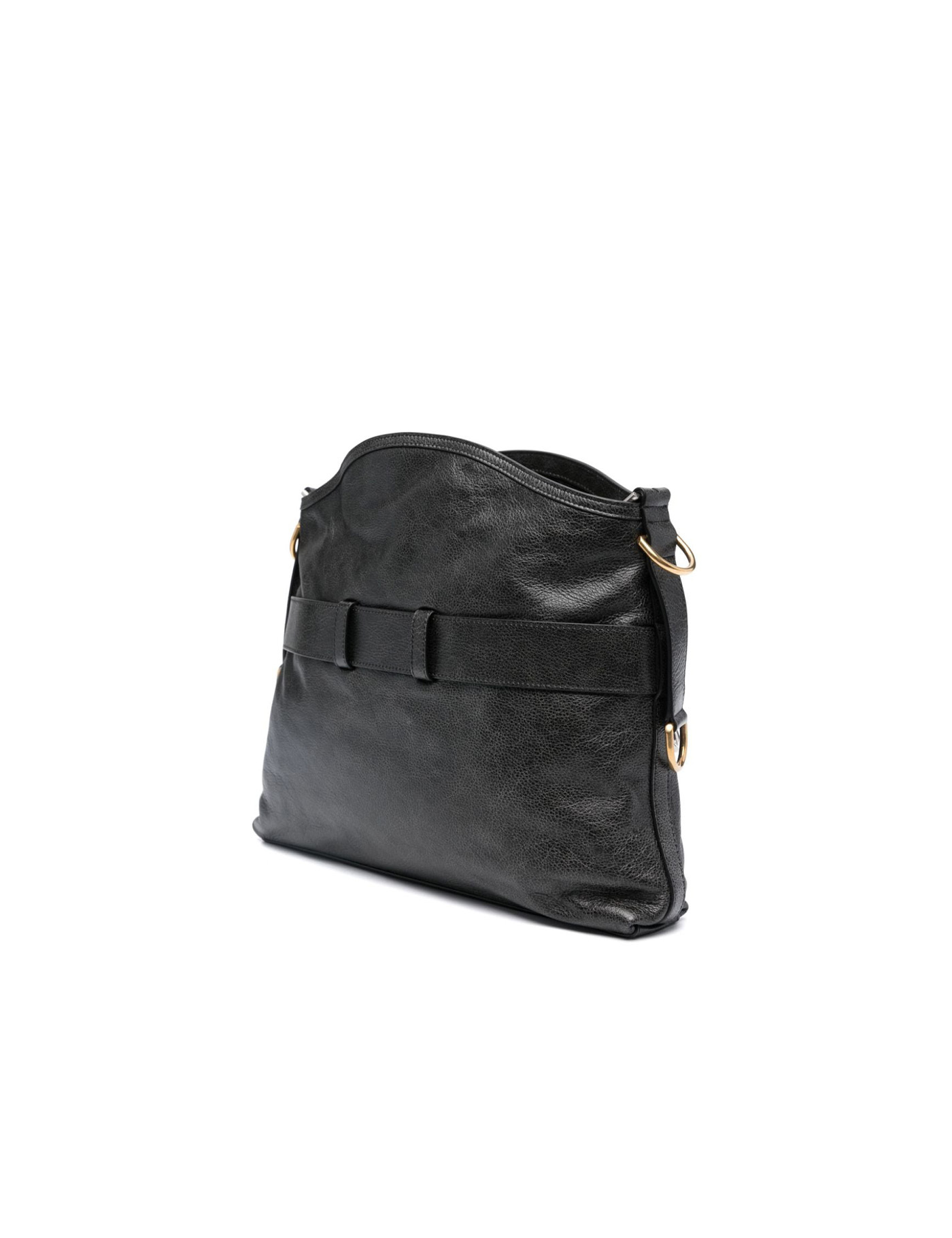 black calf leather pebbled texture aged effect logo print to the front decorative buckle detailing adjustable logo-print shoulder strap main compartment internal zip-fastening pocket internal logo tag full lining gold-tone and silver-tone hardware open top This piece comes complete with a protective dust bag.
