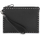 The Valentino Garavani Rockstud Pouch is made of hammered leather with iconic ruthenium-finished studs applied on the edges. It features a zip closure, smooth leather interior with six credit card slots and an open pocket, and a removable wrist strap.