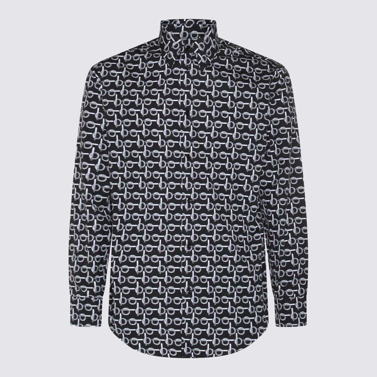 Black and white cotton shirt from Burberry featuring long sleeves, round hem, all over print and regular vestibility.