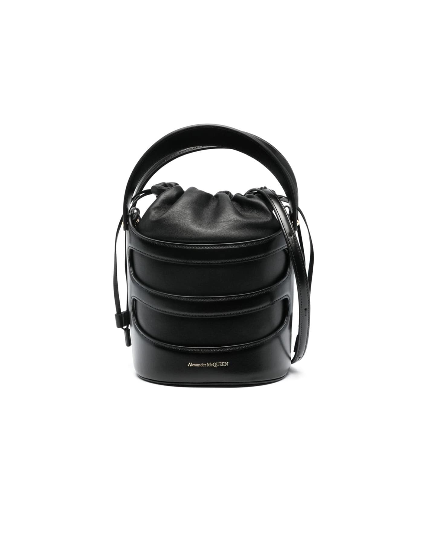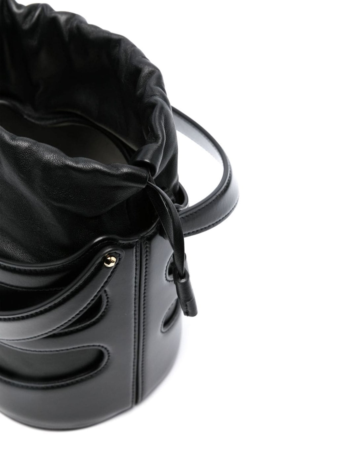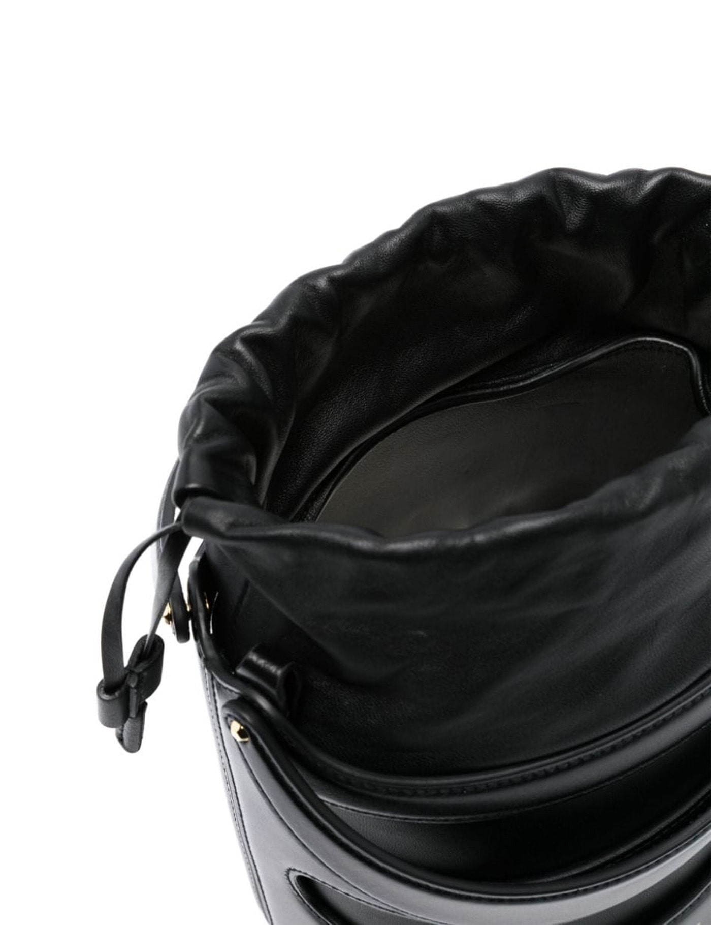Black leather The Rise bucket bag Width: 16 cm Height: 18 cm Depth: 14,5 cm Handle height: 9 cm Min shoulder strap length: 33 cm Max shoulder strap length: 55 cm