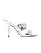 Calfskin Sandals by Dsquared2, double strap on the back of the foot embellished with metallic cut-out details, leather stiletto heel, press-studded logo insole, open front round toe.