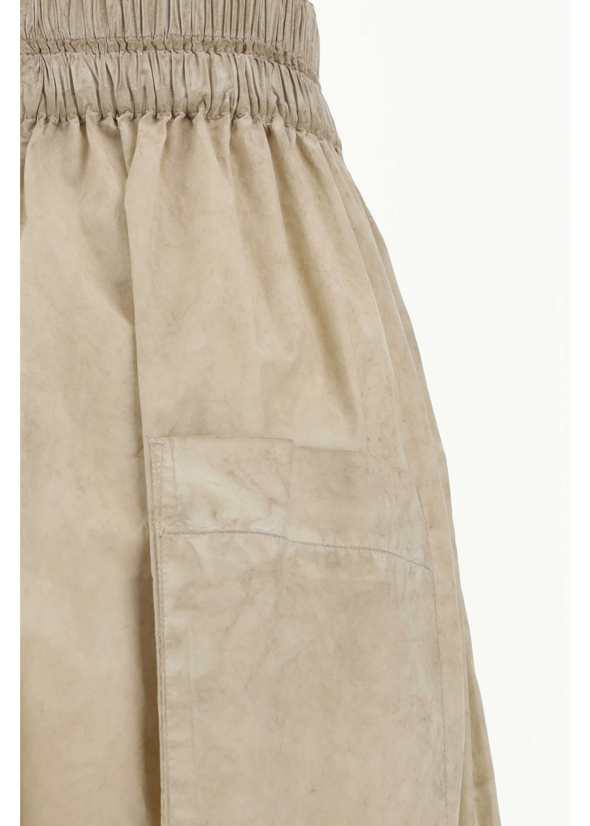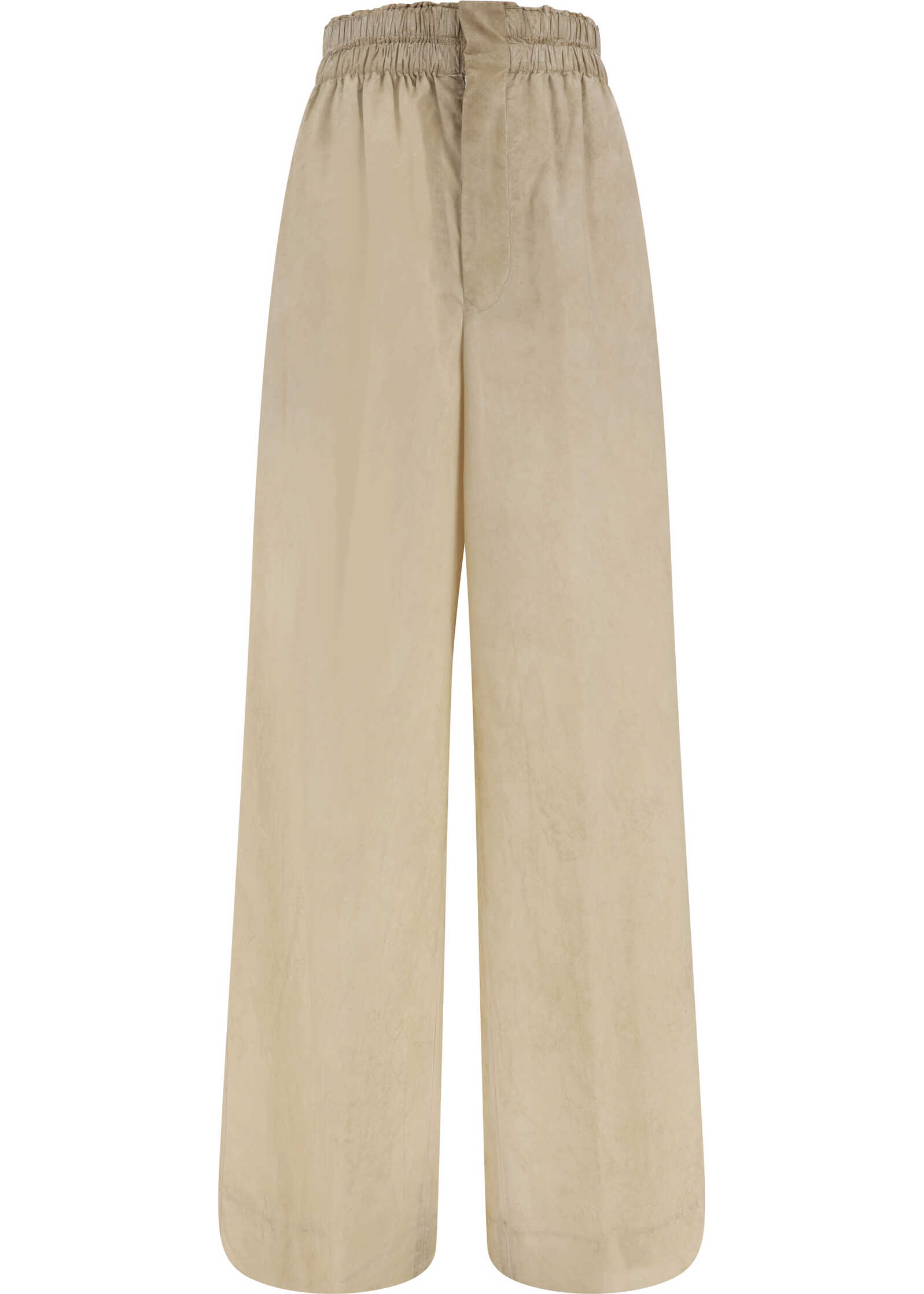 Cotton Pants by Quira, wide-leg pattern, belt and hook-and-eye closure at front, elasticized waistband, two side welt pockets, one slit patch pocket at back, monochrome pattern, oversize fit.