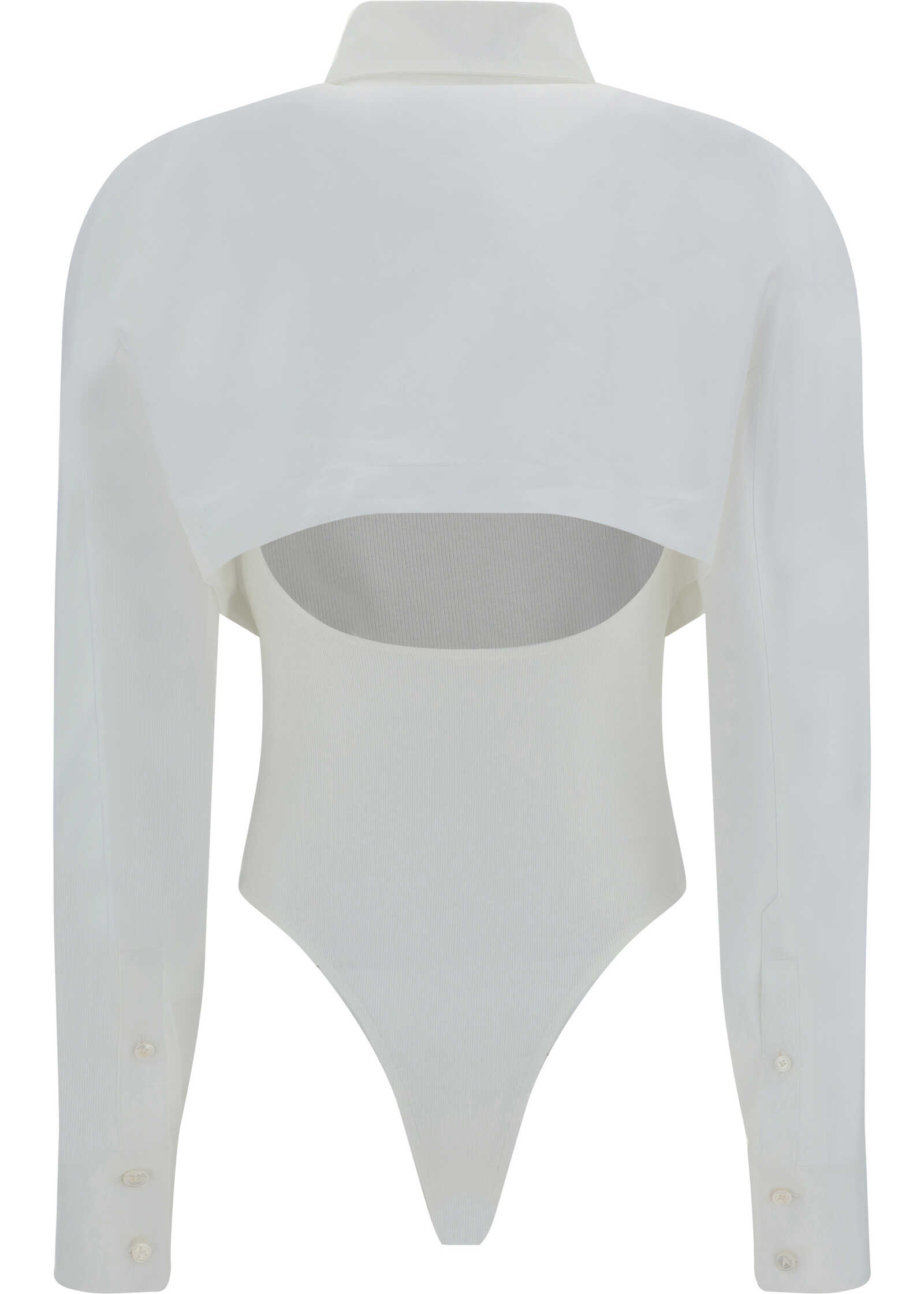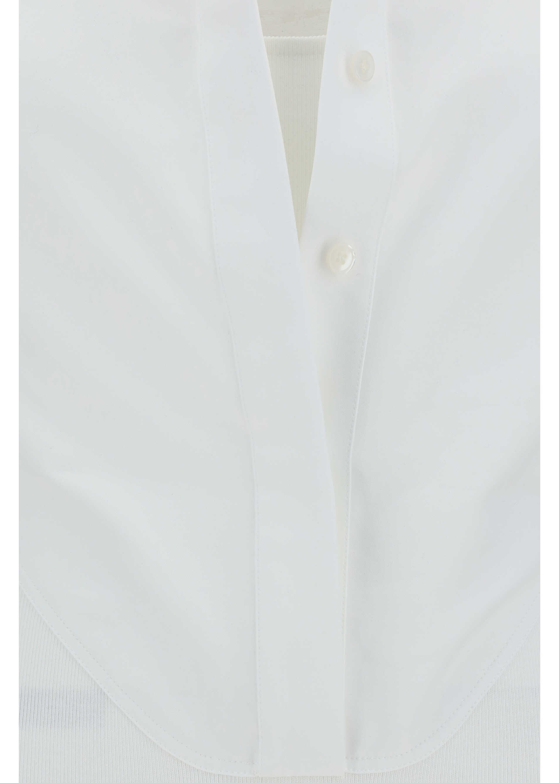 Cotton Body Shirt by Alaïa, double-layered design, classic collar, front closure by concealed buttons, body-like inner layer, all-over ribbed design, classic closure by snap buttons on bottom, monochrome pattern, regular fit.