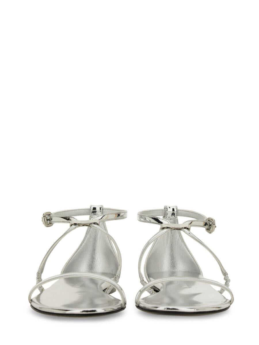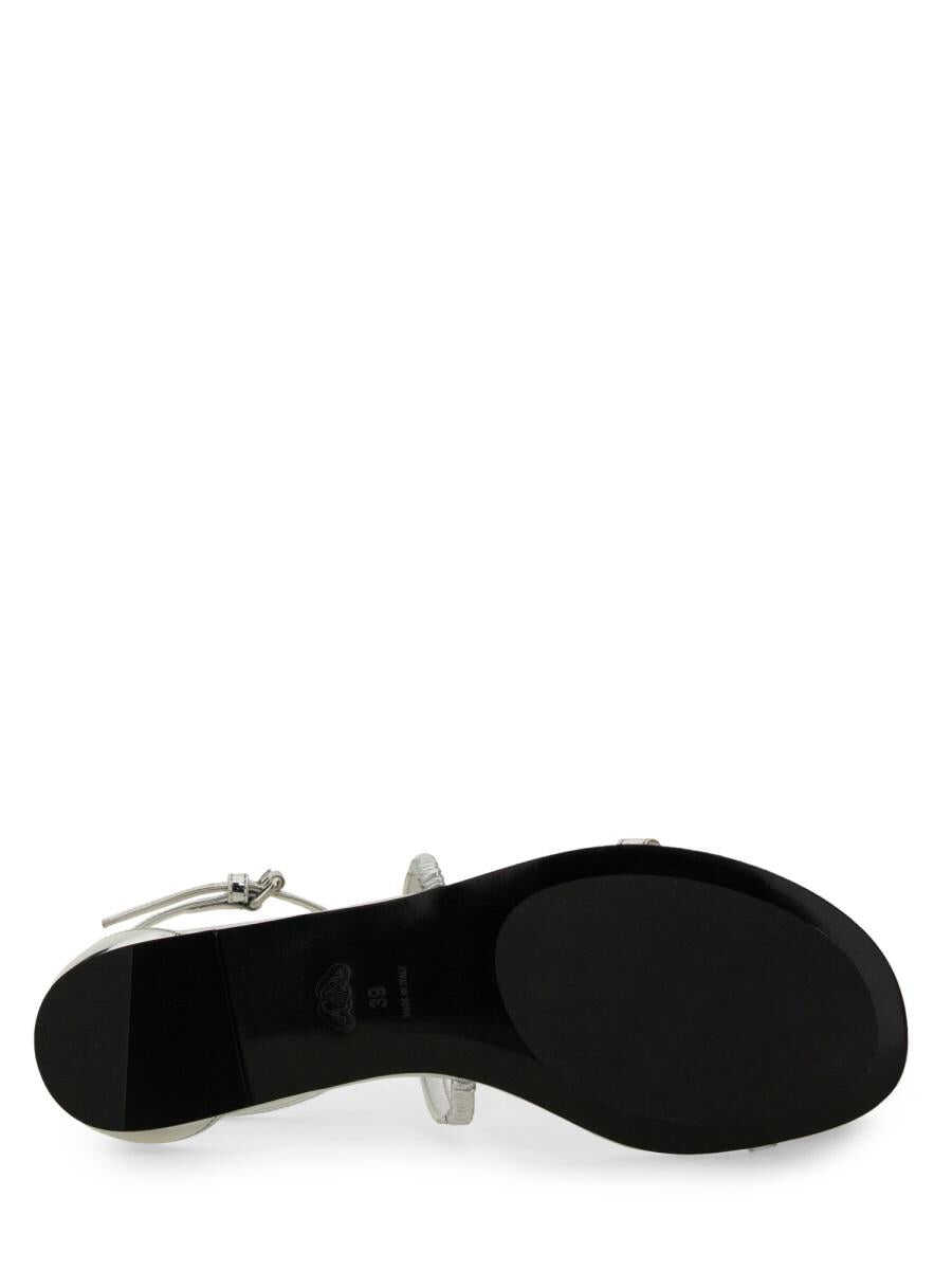 Alexander McQueen Metallic Leather sandale fara toc argintii