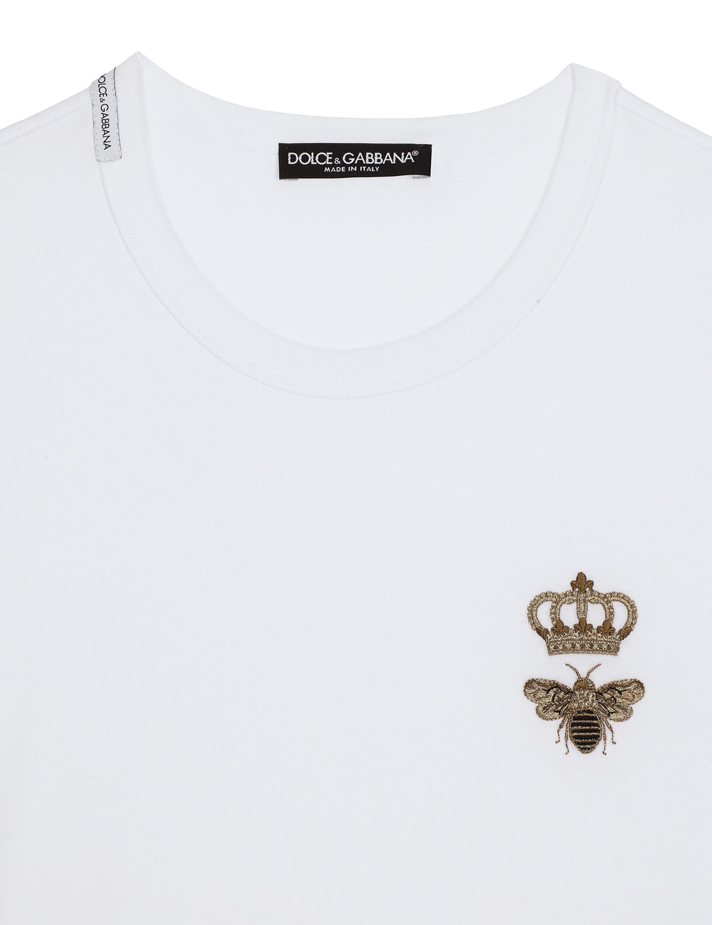 white/gold-tone cotton embroidered motif crew neck short sleeves