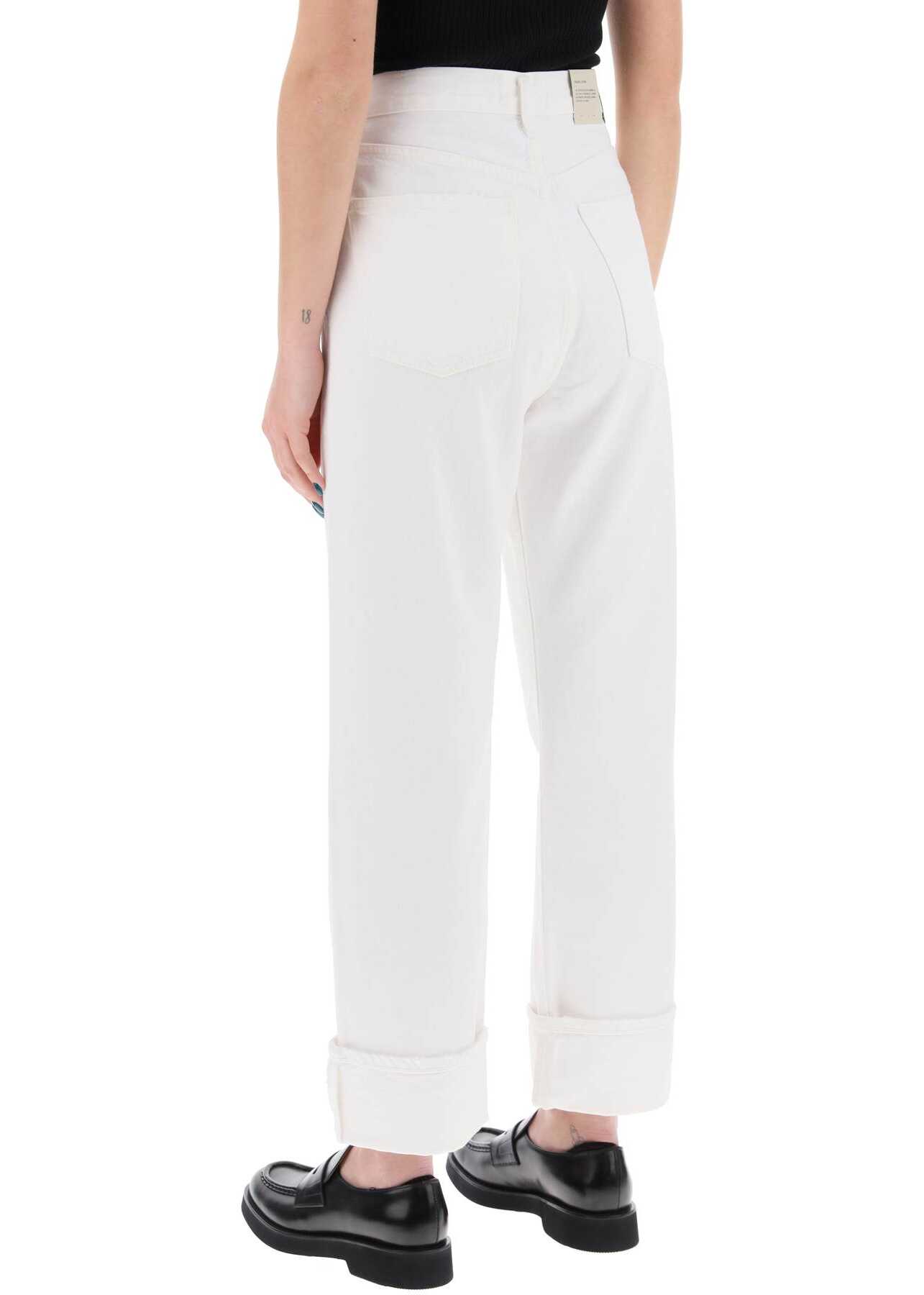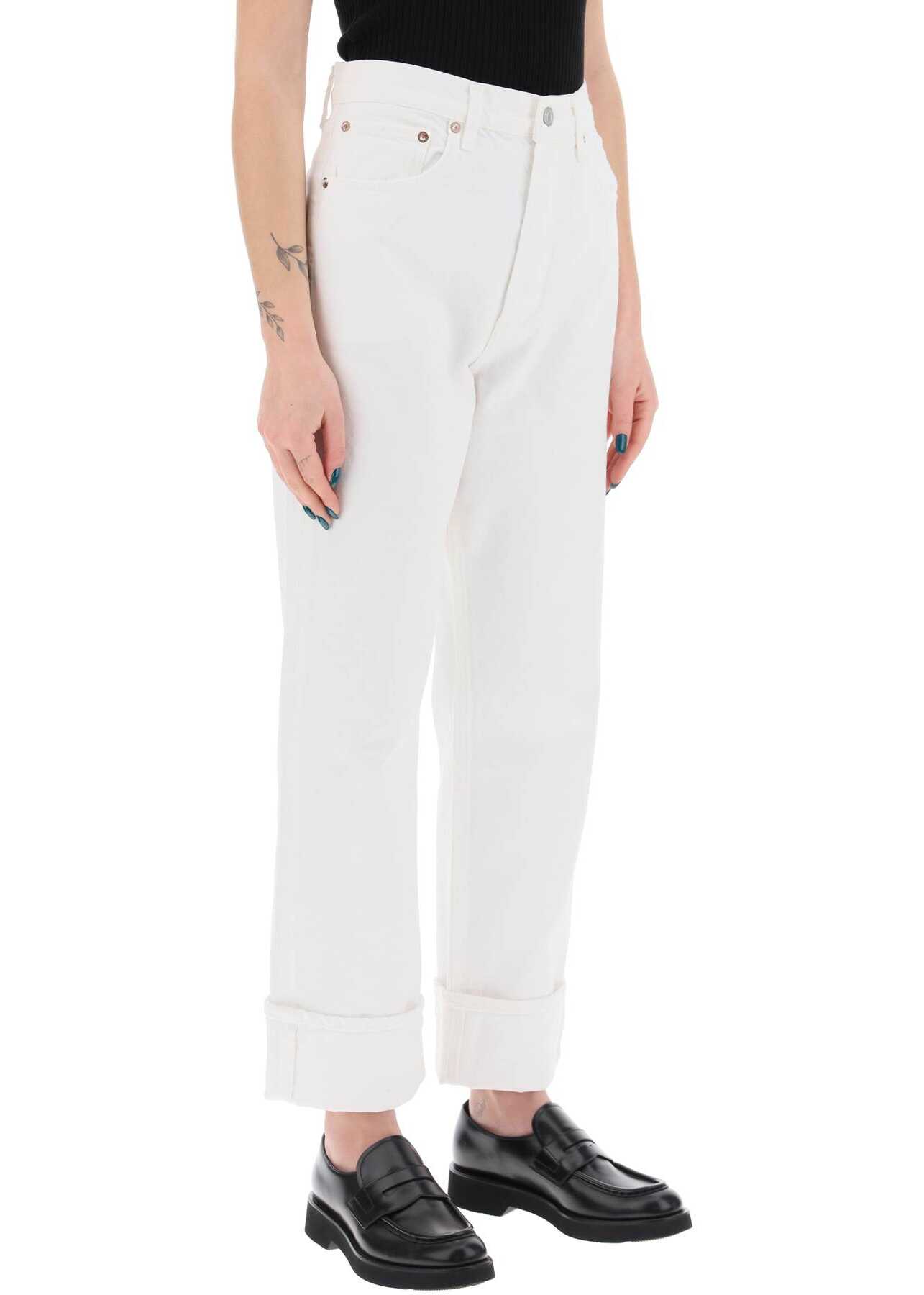 The Fran model jeans by Agolde are made of organic cotton denim, featuring a five-pocket design with a straight and cropped cut and low crotch. They have hidden logo buttons closure, belt loops, and unfinished cuffs at the bottom. The model is 177 cm tall and wears a size 26.