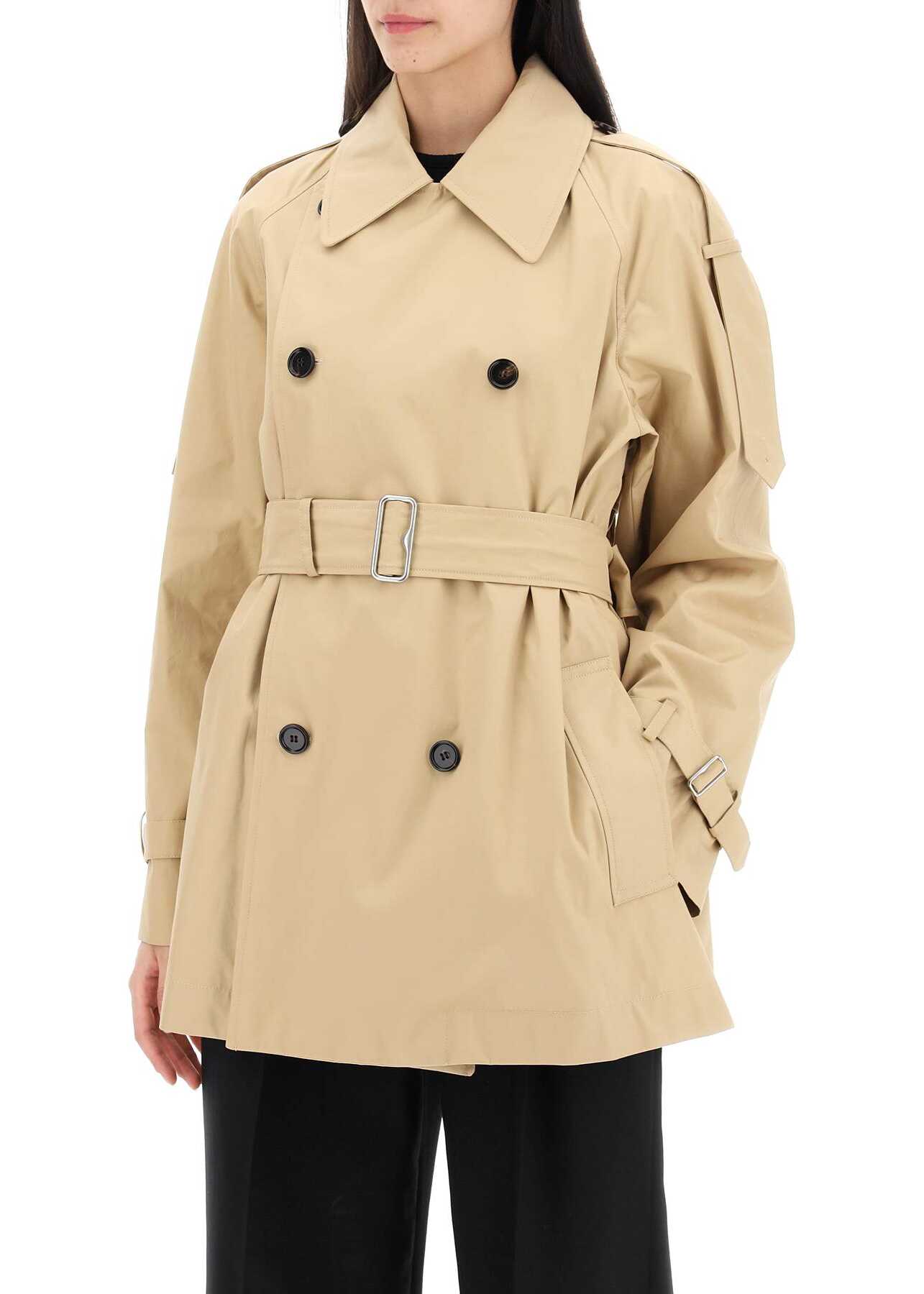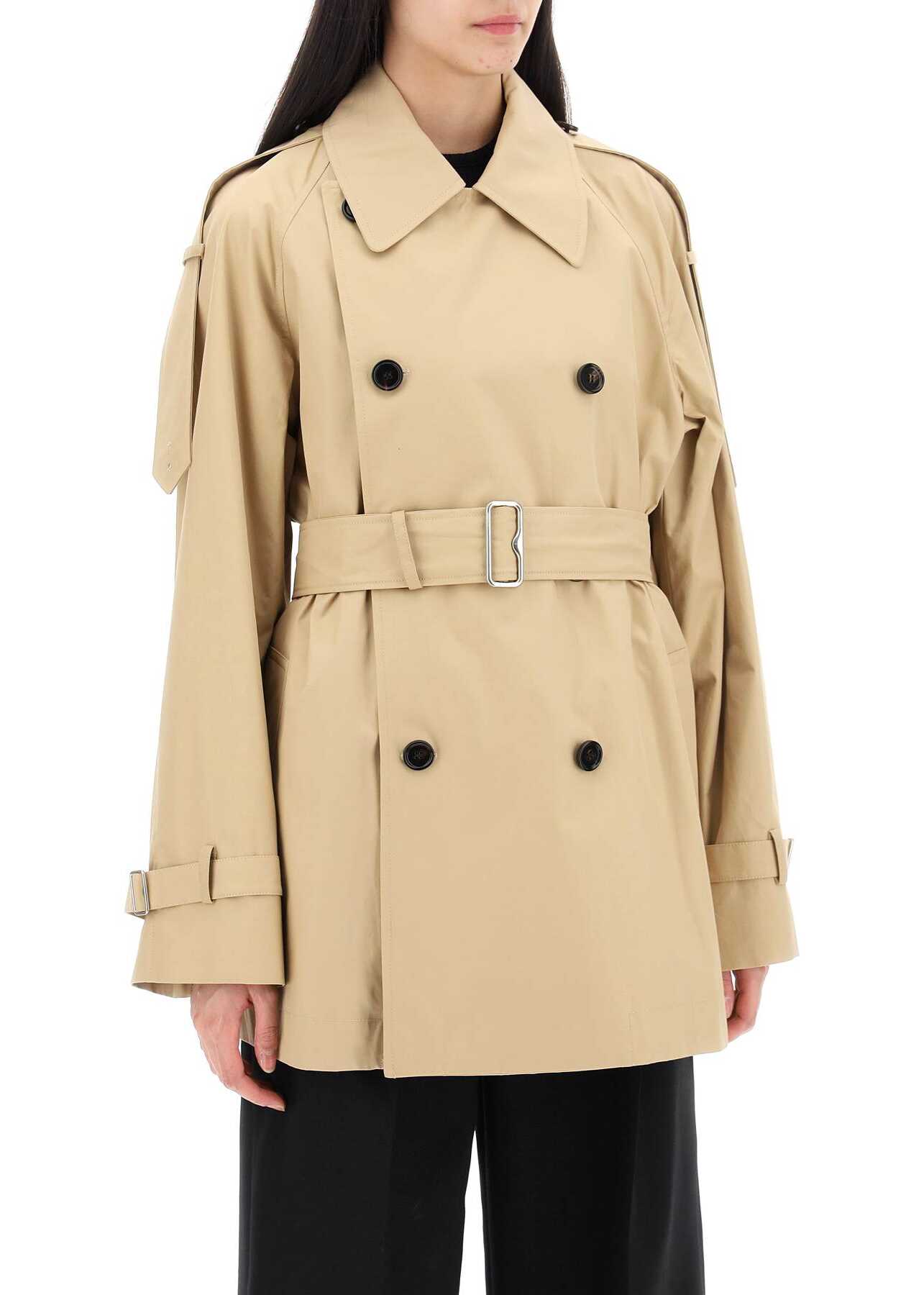 This Burberry midi trench coat is made of organic cotton gabardine, featuring a double-breasted design with mirrored lapels. The raglan sleeves have shoulder straps and adjustable cuffs with buckle straps, while the side pockets are welted. Partially lined in cotton with the iconic Burberry Check pattern. The slim A-line silhouette is cinched at the waist with an adjustable belt and the iconic B-shaped metal buckle. The model is 177 cm tall and wears a UK size 6.