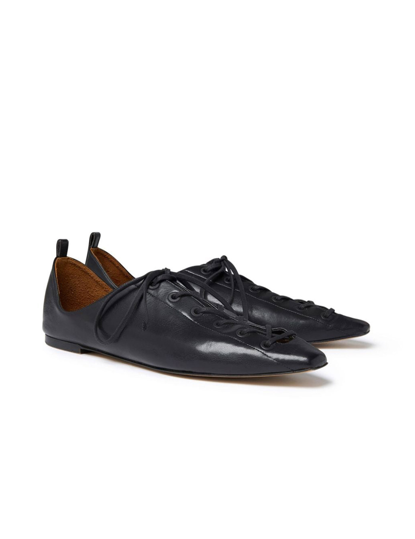 Stella McCartney's ballerina flats are made of matte Alter Mat and feature a lace-up closure with tone-on-tone metal eyelets. The pointed and squared toe, along with the back strap, add a touch of elegance to these shoes. The interior is lined with faux suede and the sole is made of eco-friendly leather.