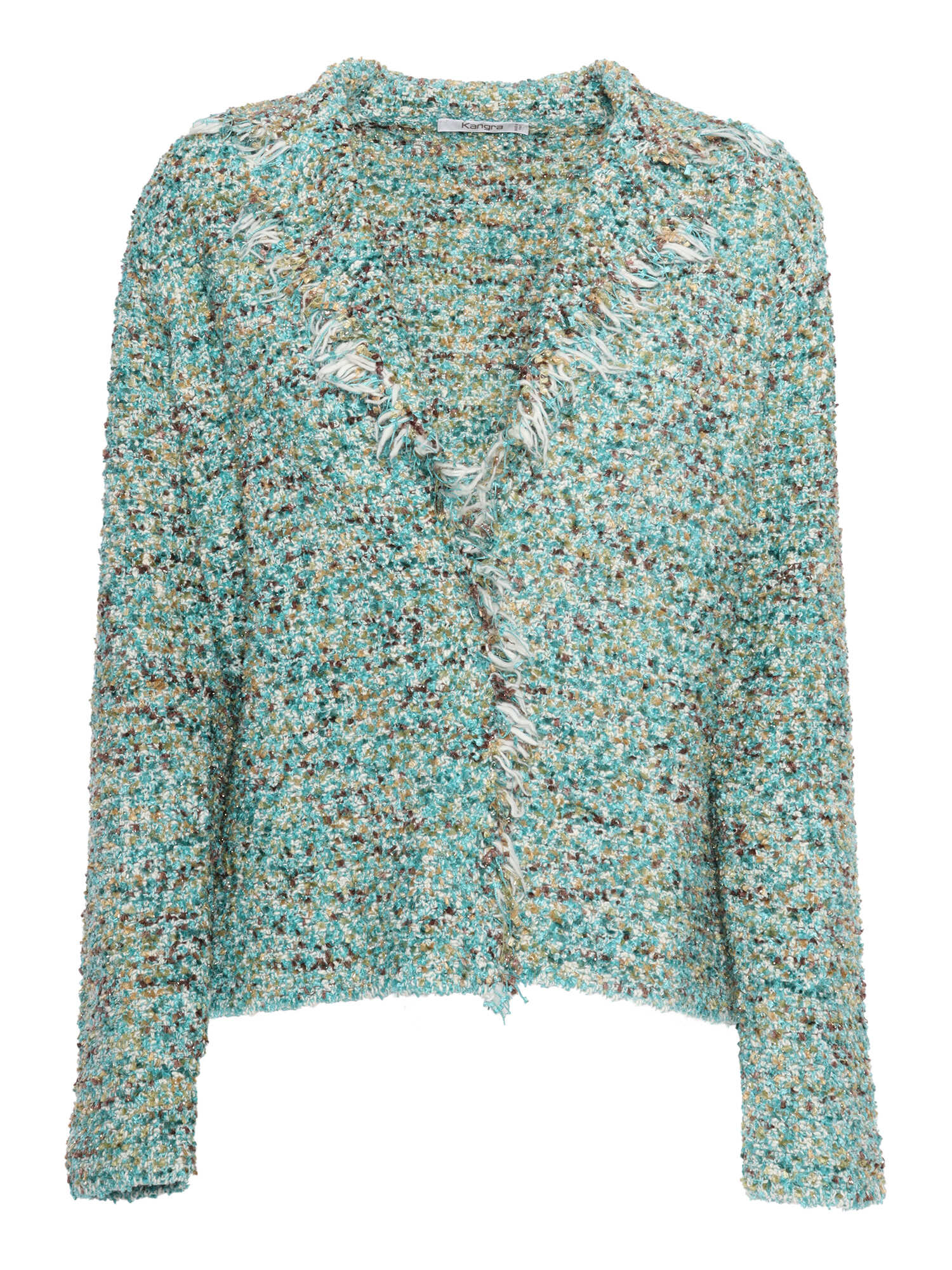 Multicolor women's blazer with lapel collar, in woven cotton blend, with fringes on the hem of the front closure.