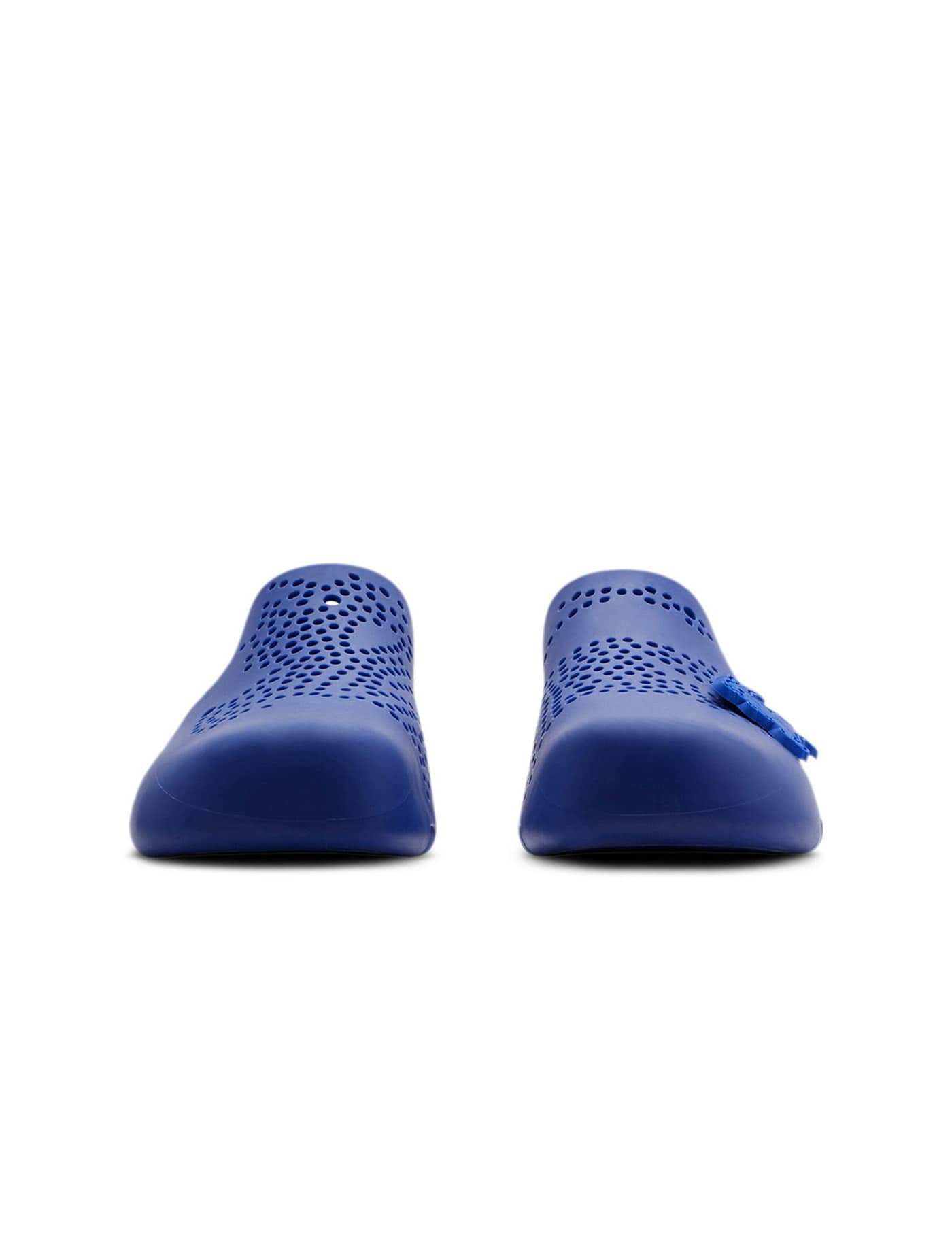 The Burberry Stingray Clogs are made entirely of rubber with a perforated Equestrian Knight Design logo and a removable charm.