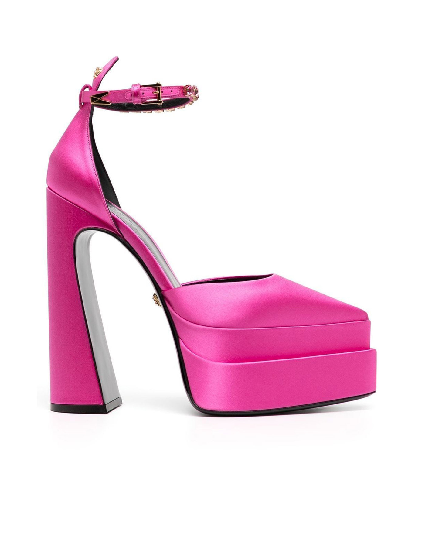 Fuchsia Satin Aevitas Pointy Pumps Heel height: 16 cm Platform: 6 cm