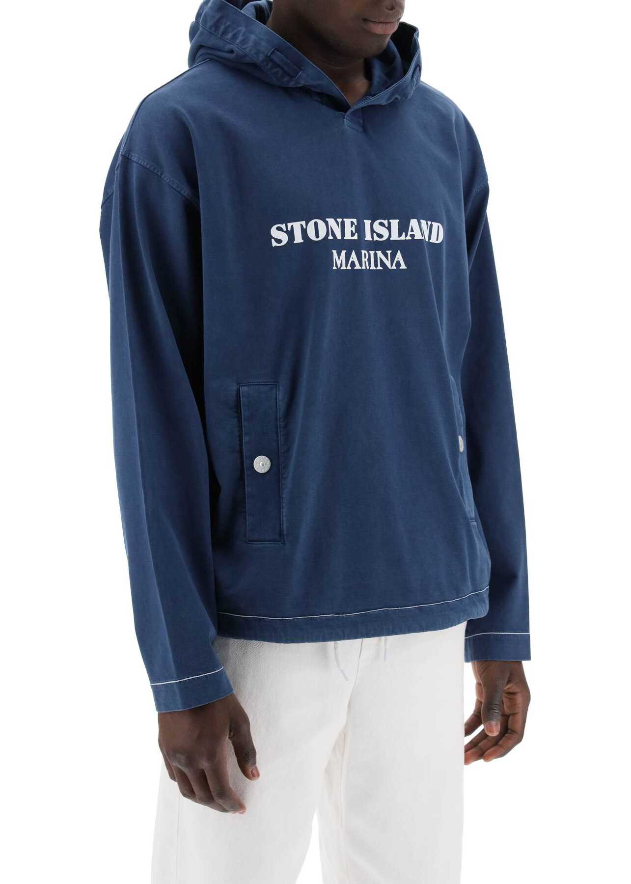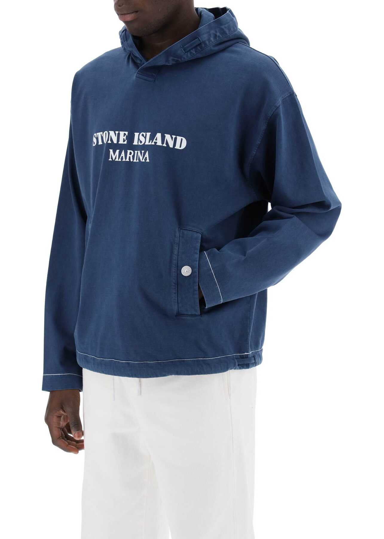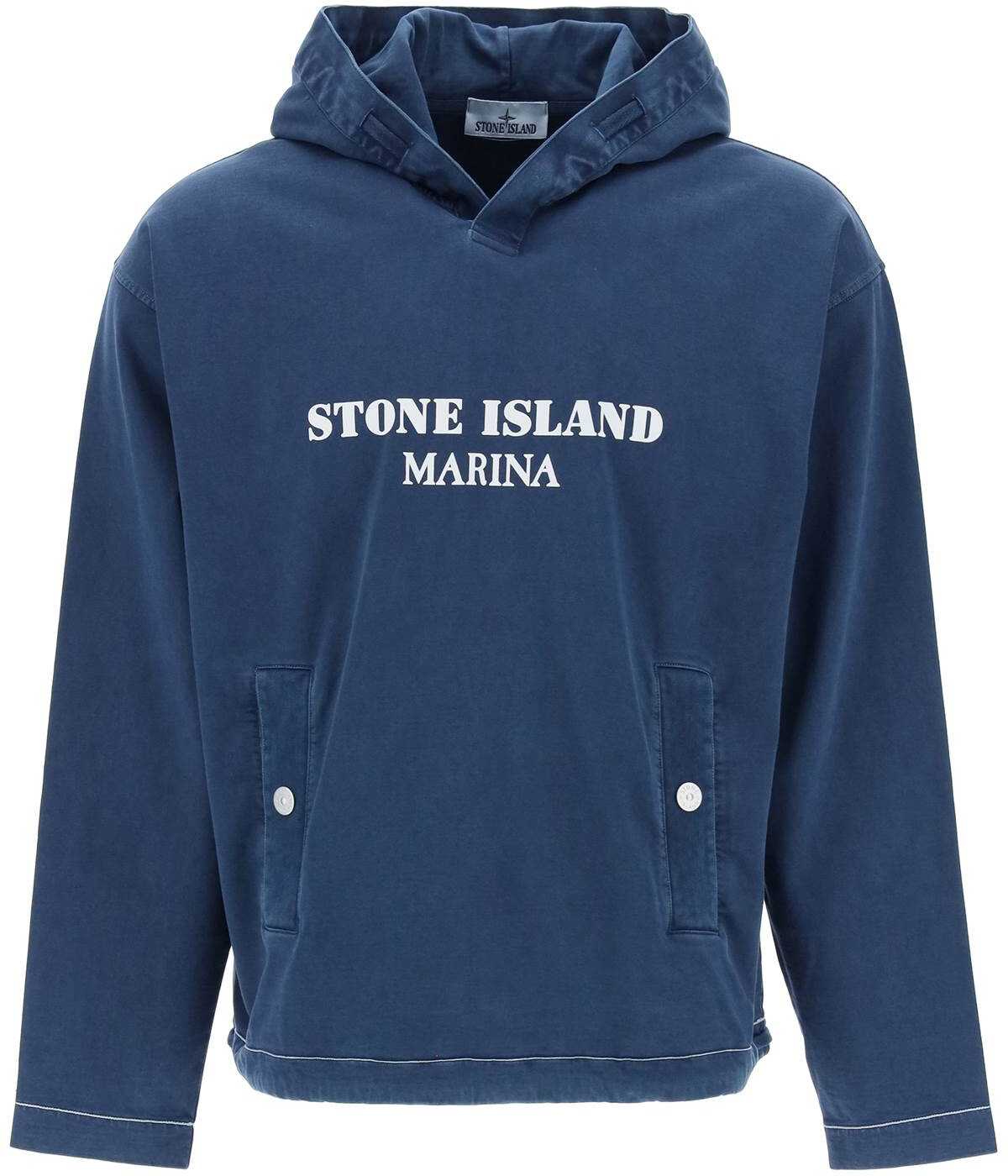 This Stone Island sweatshirt is made of lightweight pure cotton jersey, dyed with an "OLD" effect for a slightly worn and three-dimensional look. The oversized design features a double-layer fabric hood, trimmed with double cotton tape and complete with drawstring, front patch pockets with branded snap buttons, and a drawstring at the bottom. Finished with a contrasting logo print on the chest and chain stitch seams on the cuffs and hem. The model is 187 cm tall and wears size L.