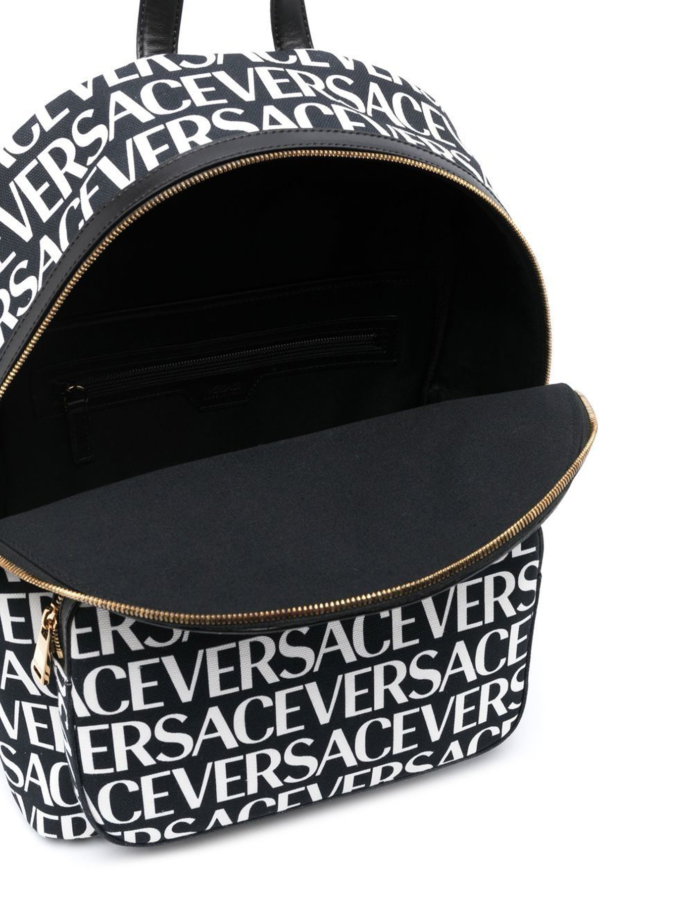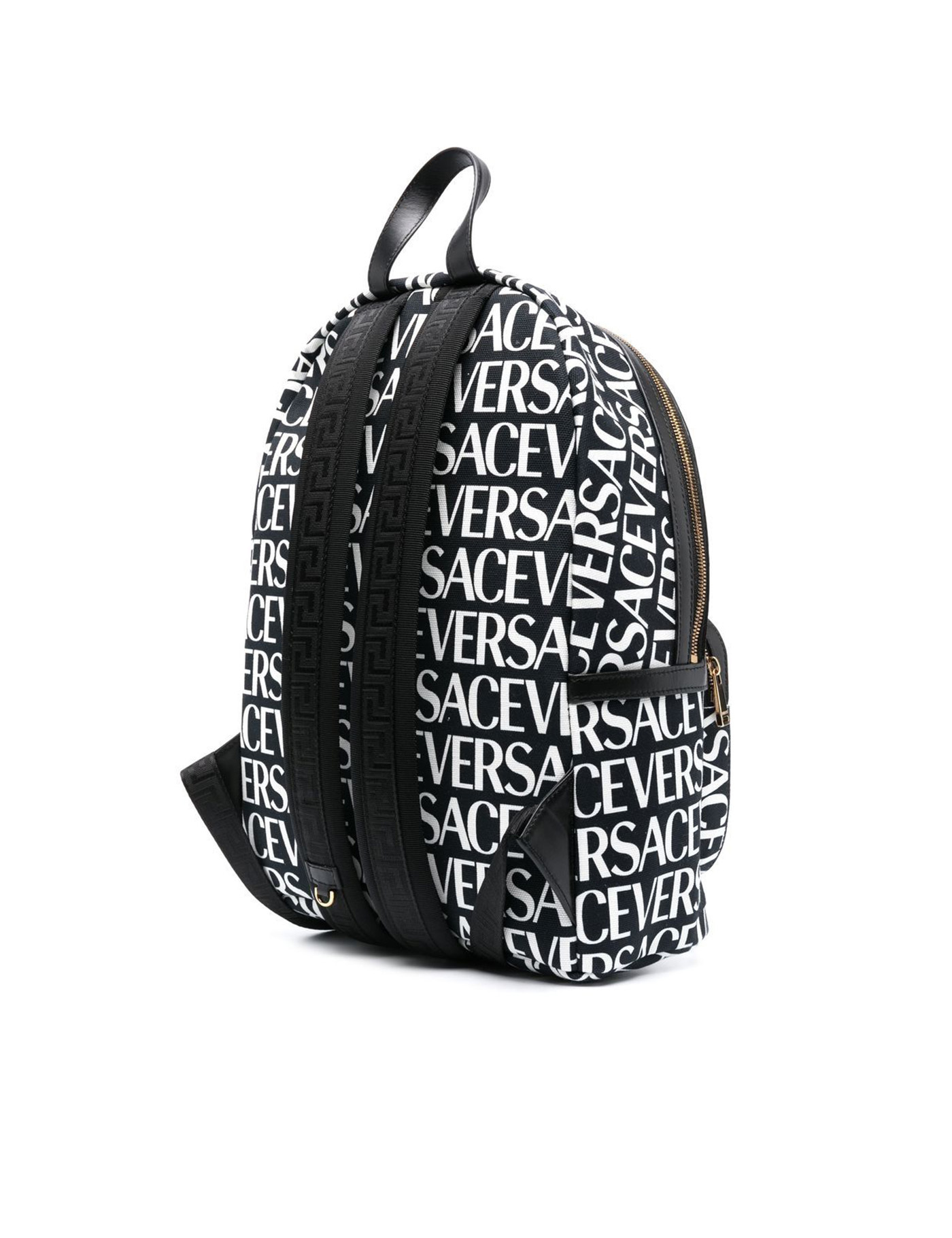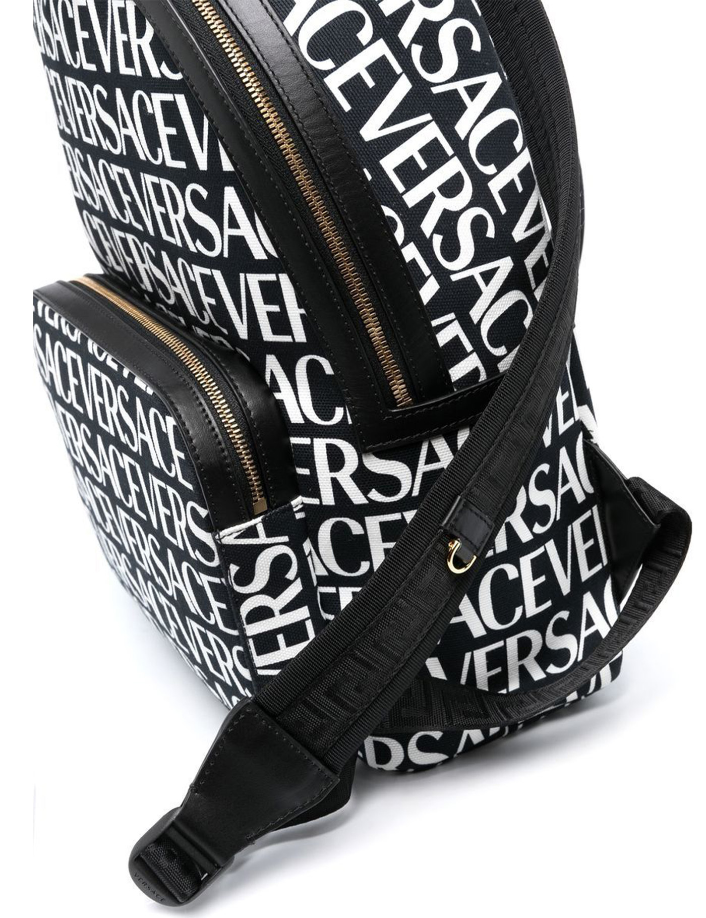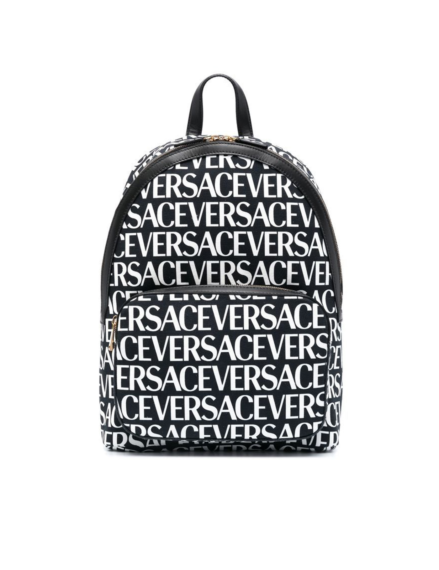 Versace backpack made of canvas covered with the Versace Allover logo print.