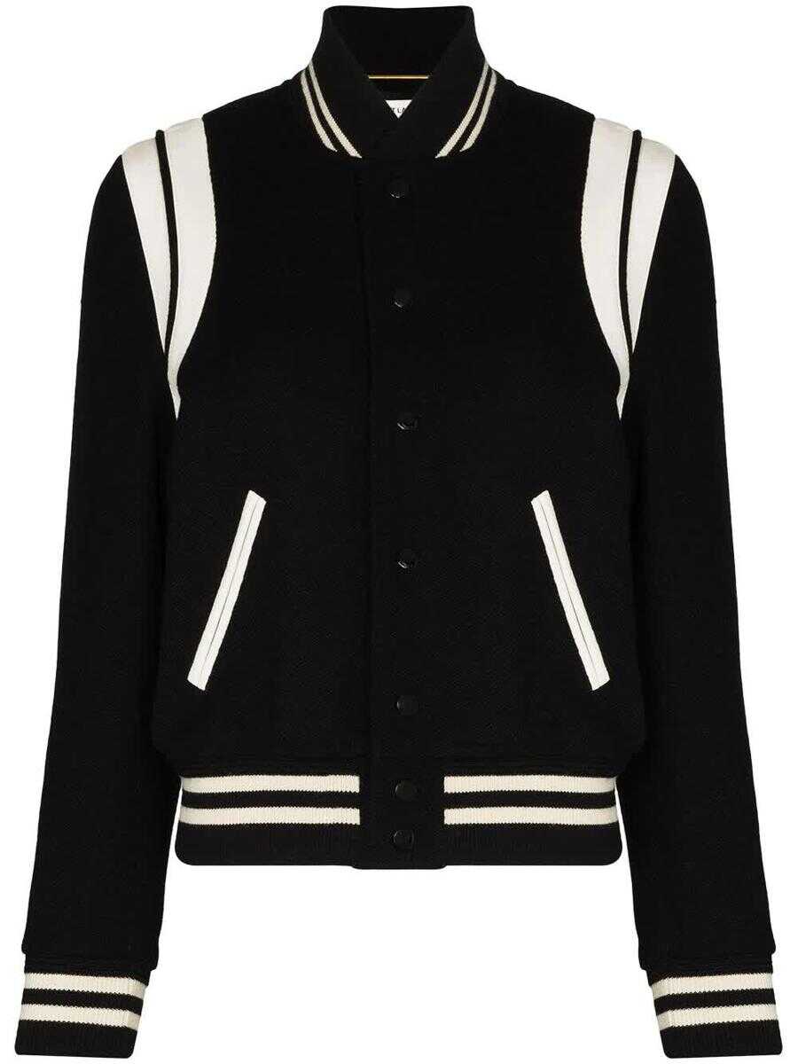 Saint Laurent presents this teddy jacket made of recycled wool with a striped pattern. - Wool teddy - Color: black - 90% WV, 10% PA - Recycled wool - Silk lining - Snap button closure on front - 2 inside pockets - 2 front slit pockets - Made in italy
