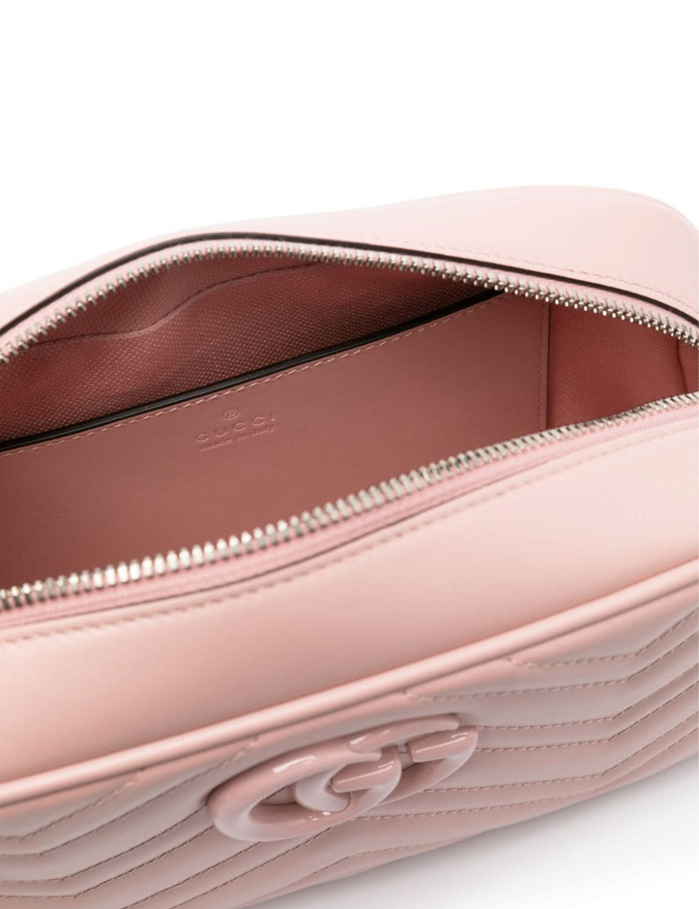 Gucci's new collection features the new version of the GG Marmont in leather with tone-on-tone enameled brass GG detail.