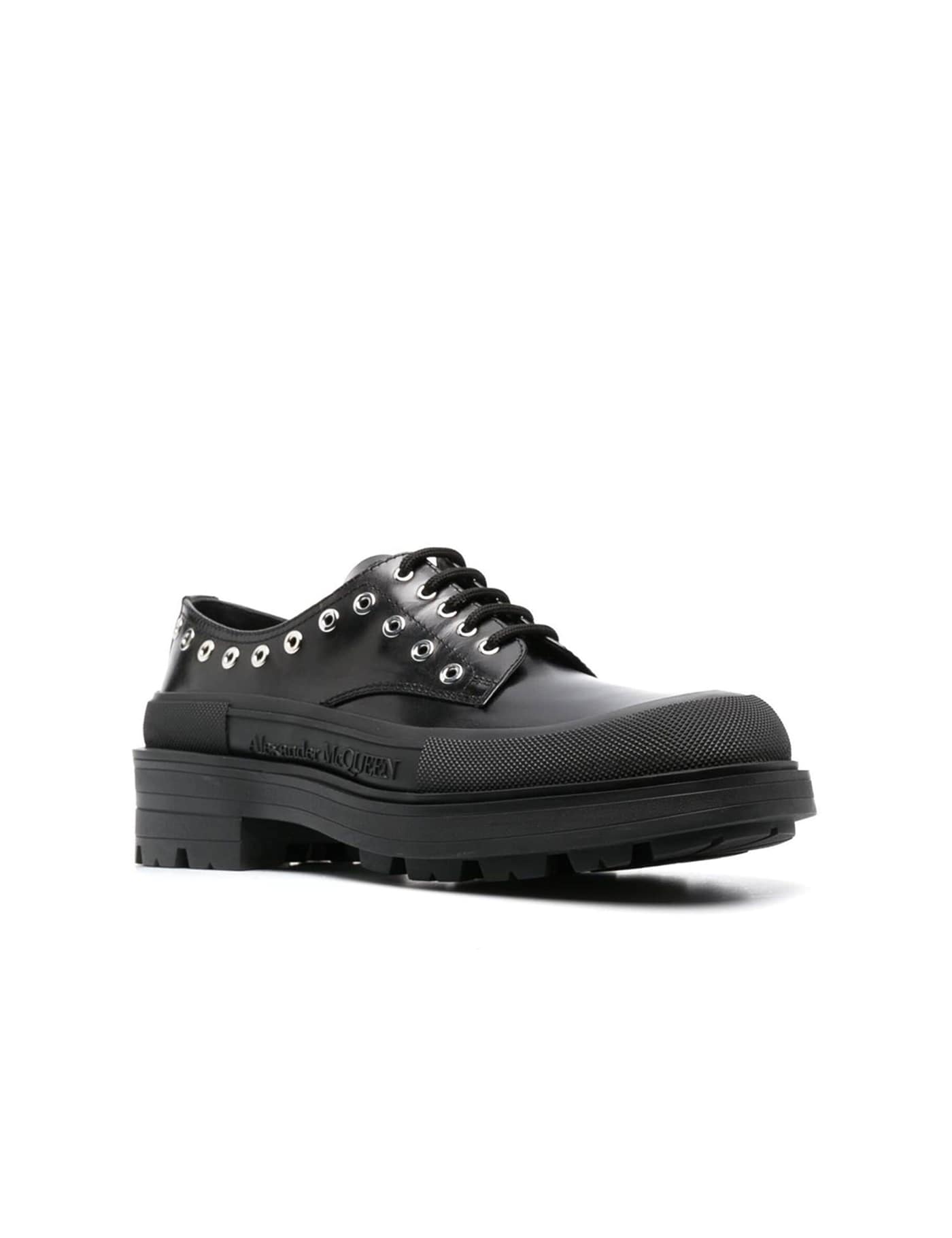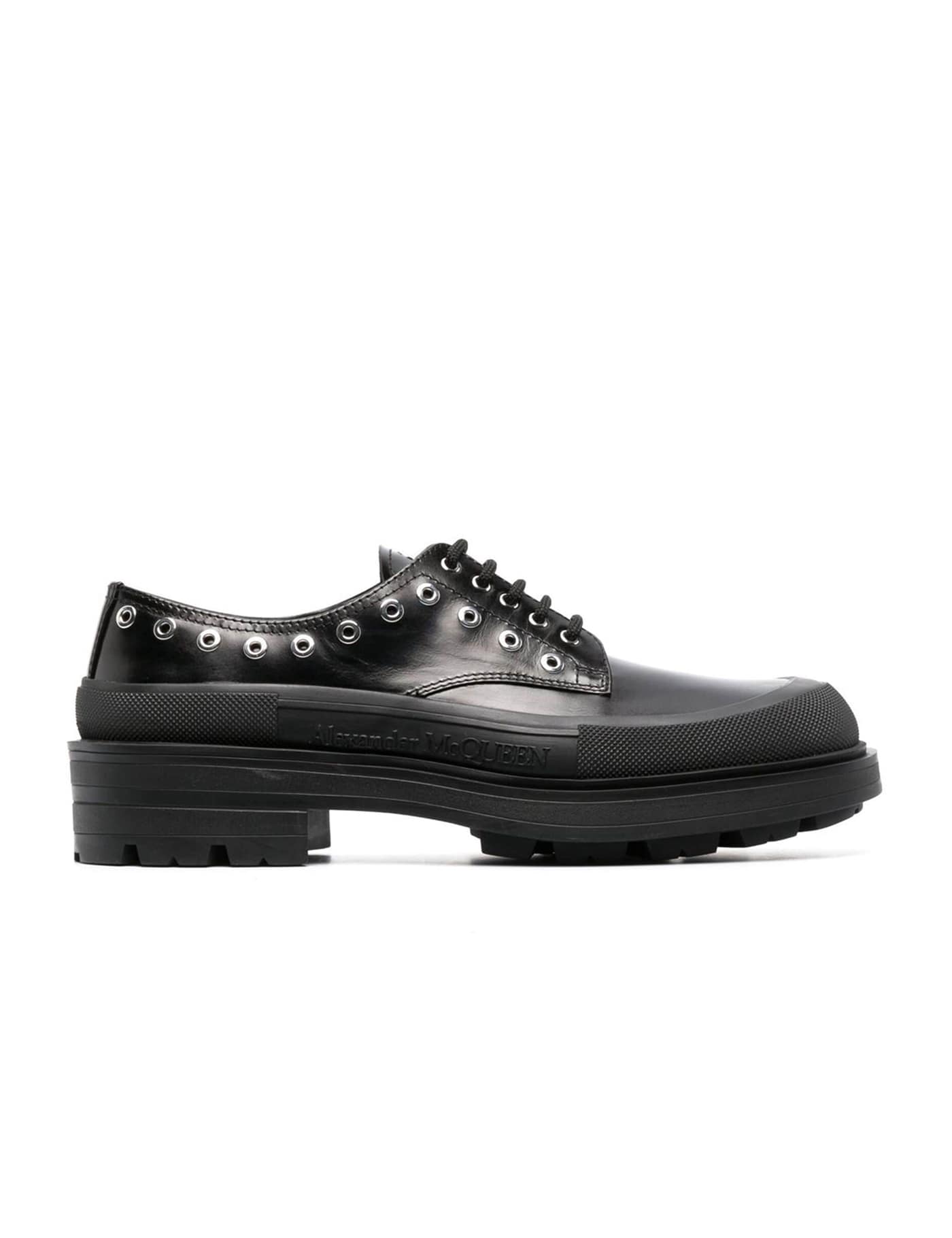 Black leather lace-up shoes
