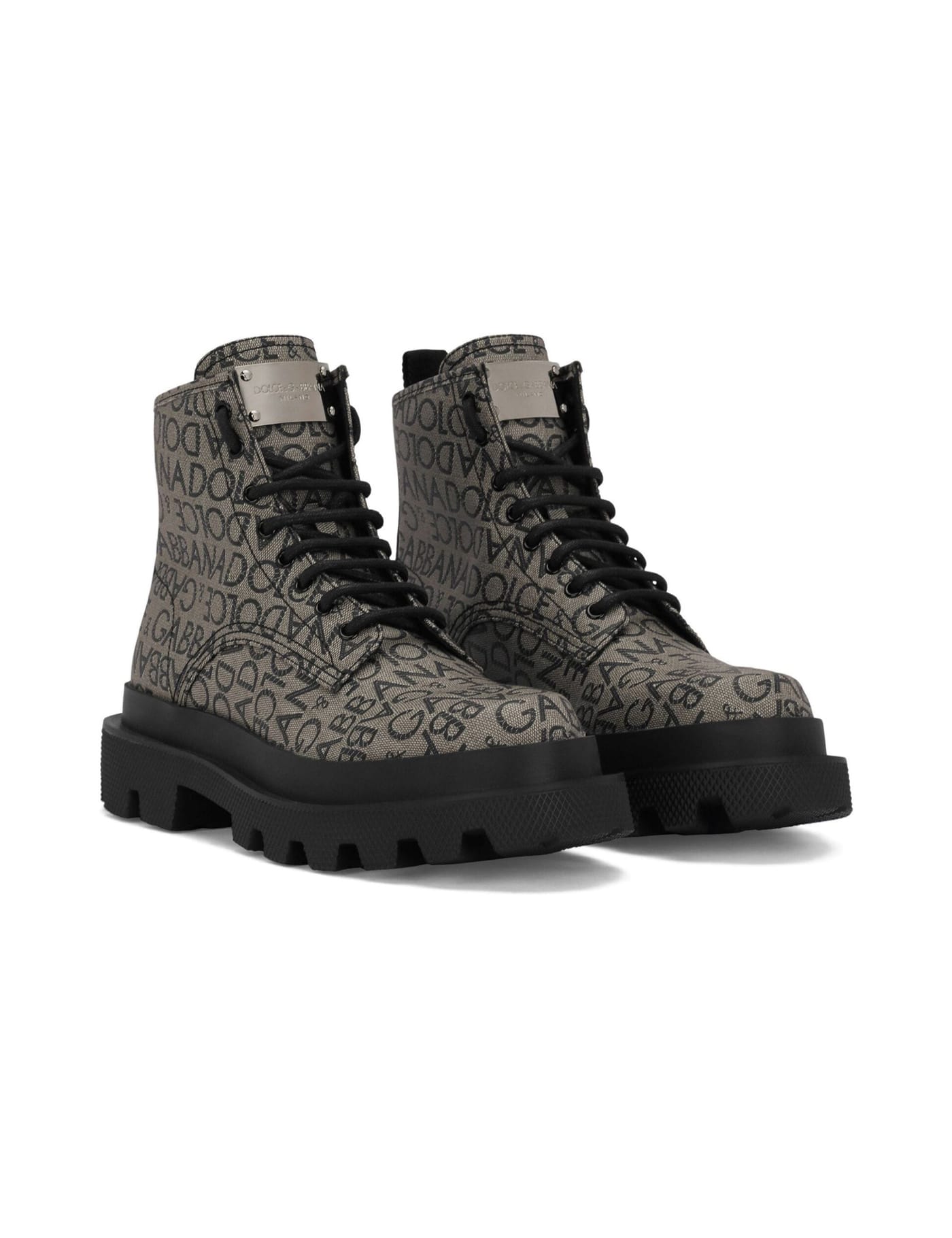 Dolce&Gabbana presents these contemporary ankle boots in all-over jacquard coated fabric with Dolce&Gabbana logo.