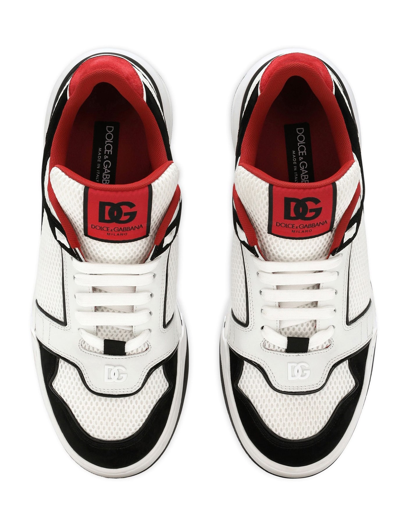 Dolce&Gabbana presents the New Roma sneaker in mesh with suede details, calfskin and DG logo. - Material mix sneaker - Color: White - Flat laces - Logoed tongue - Calfskin leather fussbett with logoed label - Logoed rubber bottom and sole - Made in Italy - Outer composition: 65% Calfskin, 12% PL, 11% VI, 9% Goatskin, 3% EA - Inner composition: 42% Lambskin, 36% PA, 22% PU