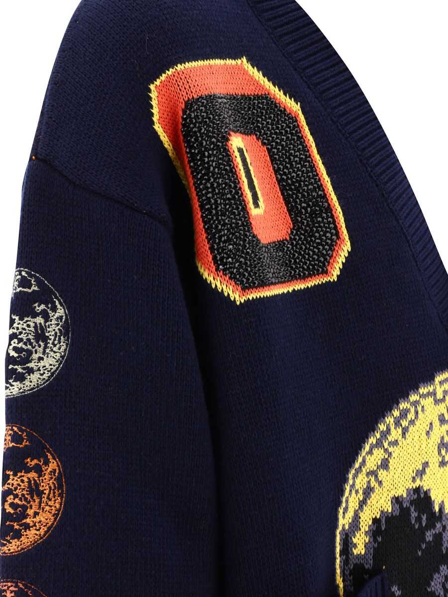 OFF-WHITE BLUE AND MULTICOLOUR WOOL BLEND MOON PHASE CARDIGAN