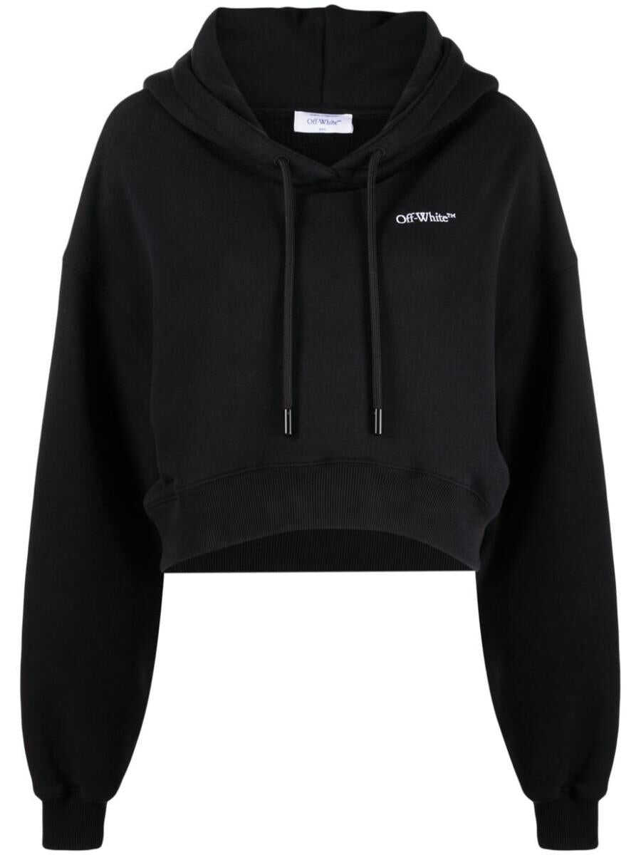 Off-White hooded sweatshirt with crop design. - Hooded sweatshirt - Color: black - Embroidered logo, - Drawstring hood - Long sleeves. - Composition: 100% CO