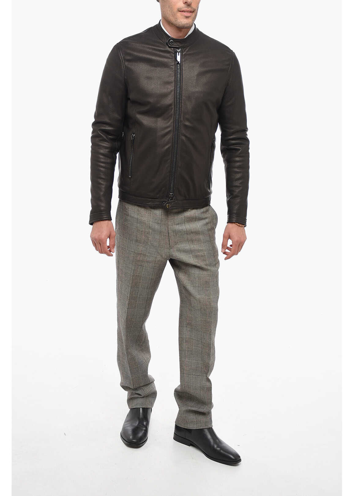Textured Leather Biker Jacket With Frontal Zip
