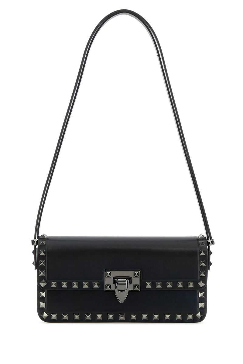 Black leather Rockstud shoulder bag Width: 23 cm Height: 12 cm Depth: 5 cm Min handle height: 30 cm Max handle height: 55 cm