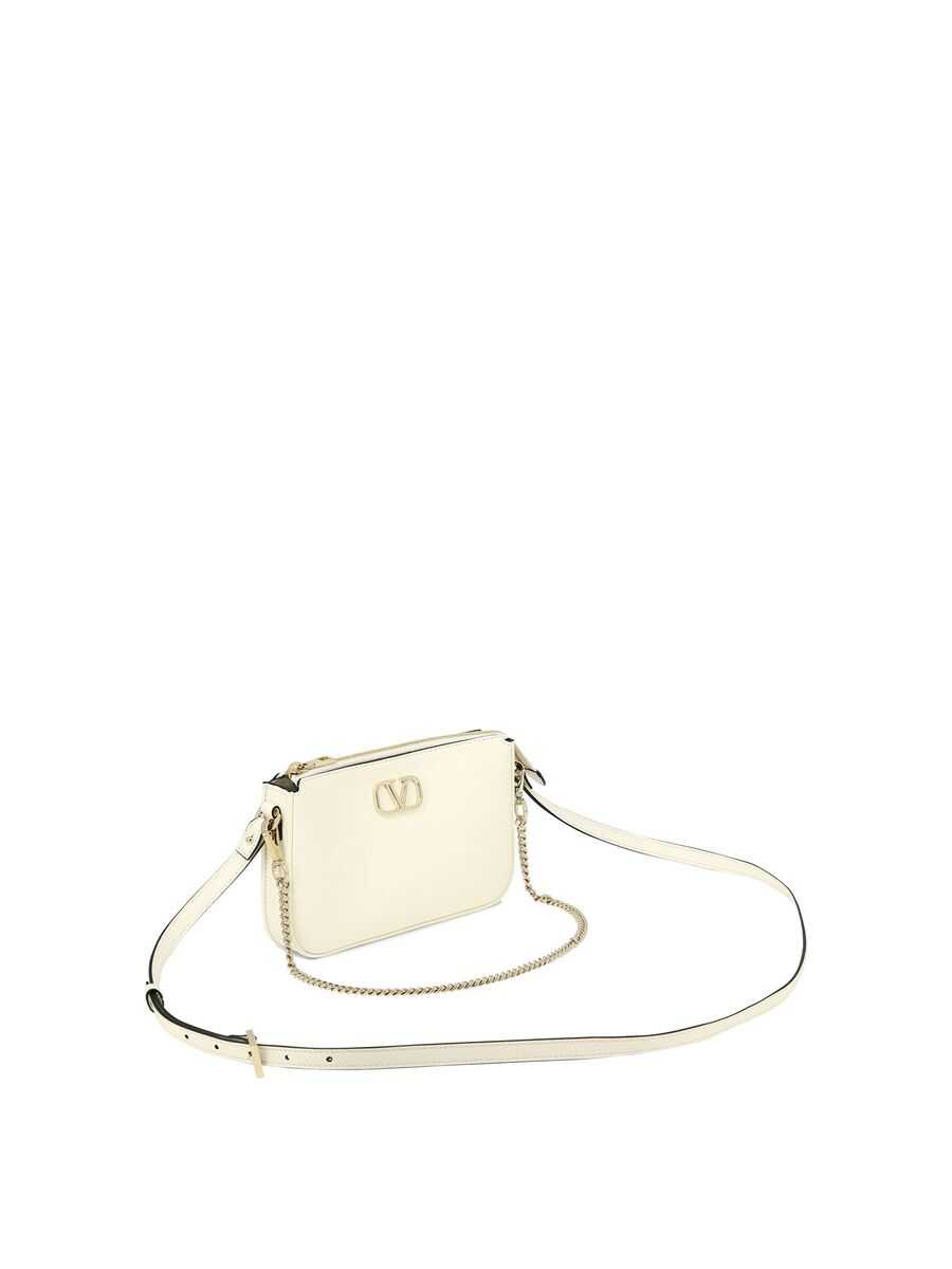 Ivory leather VLogo crossbody bag Width: 20 cm Height: 13 cm Depth: 3 cm Min shoulder strap length: 53 cm Max shoulder strap length: 58 cm
