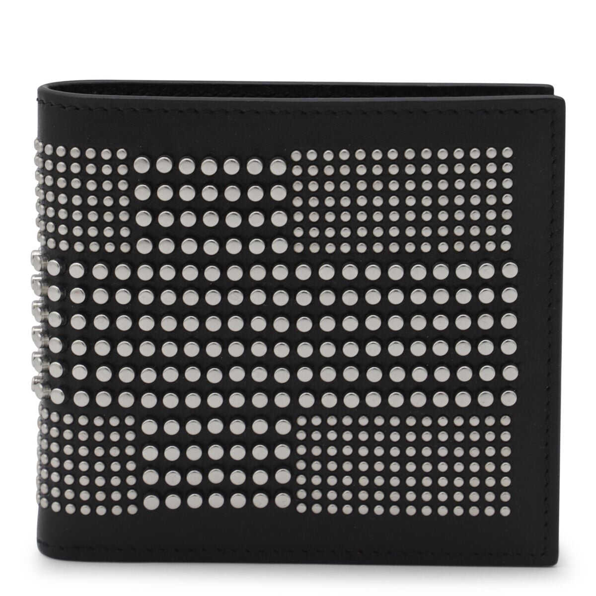 black calf leather smooth grain silver-tone stud embellishment bi-fold design internal logo stamp internal note compartments internal card slots This piece comes complete with a protective dust bag.