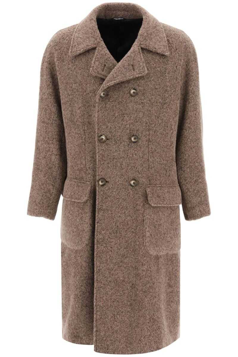 Brown wool coat from Dolce&Gabbana featuring mélange effect, notched collar, double-breasted button fastening, long sleeves, buttoned cuffs, two front flap pockets, martingale to the rear, central rear vent, straight hem and long length.