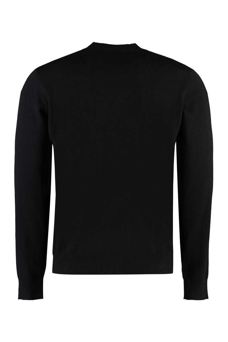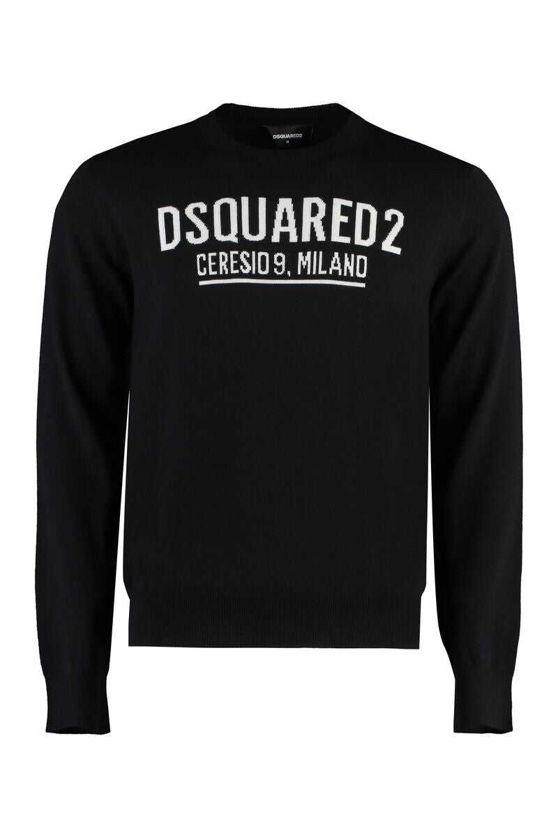 Black virgin wool logo intarsia-knit jumper from DSQUARED2 featuring crew neck, intarsia-knit logo, long sleeves, ribbed cuffs and ribbed hem.
