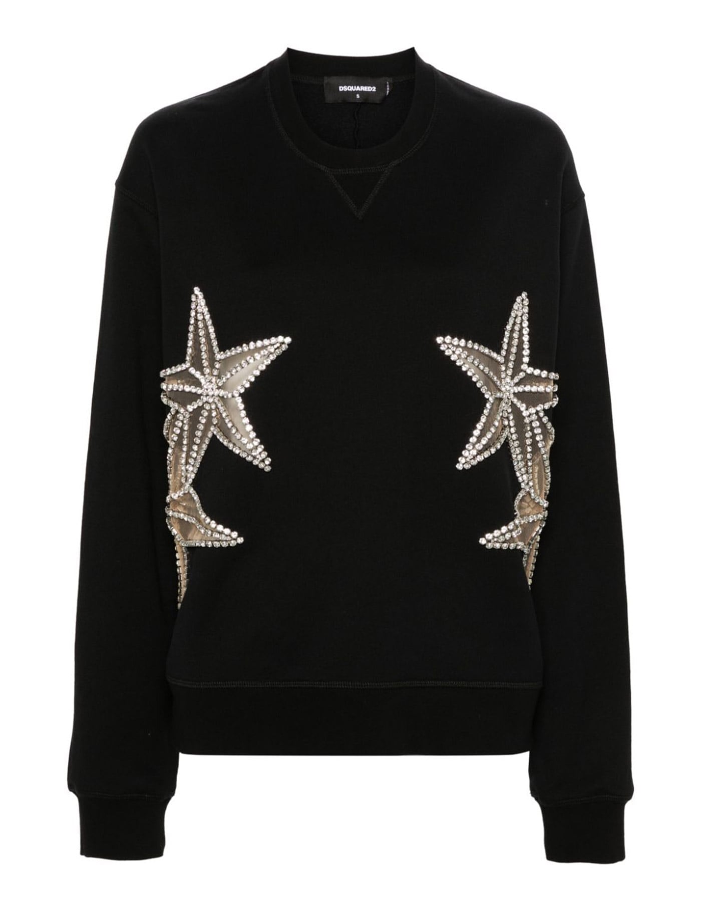 Black cotton sweatshirt from DsQuared2 featuring long sleeves, round collar, ribbed cuffs and hem, embellishment and regular vestibility.
