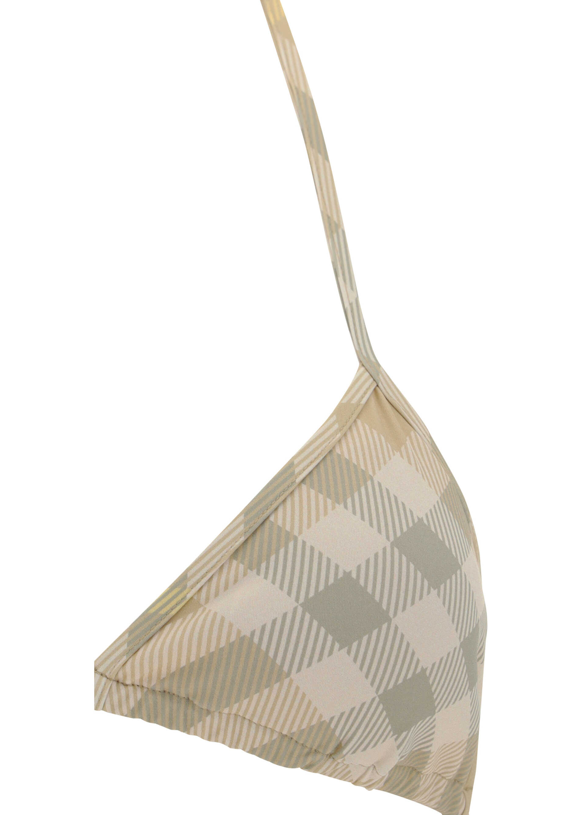 Swimsuit Top by Burberry, triangle design, iconic tartan pattern of the brand.