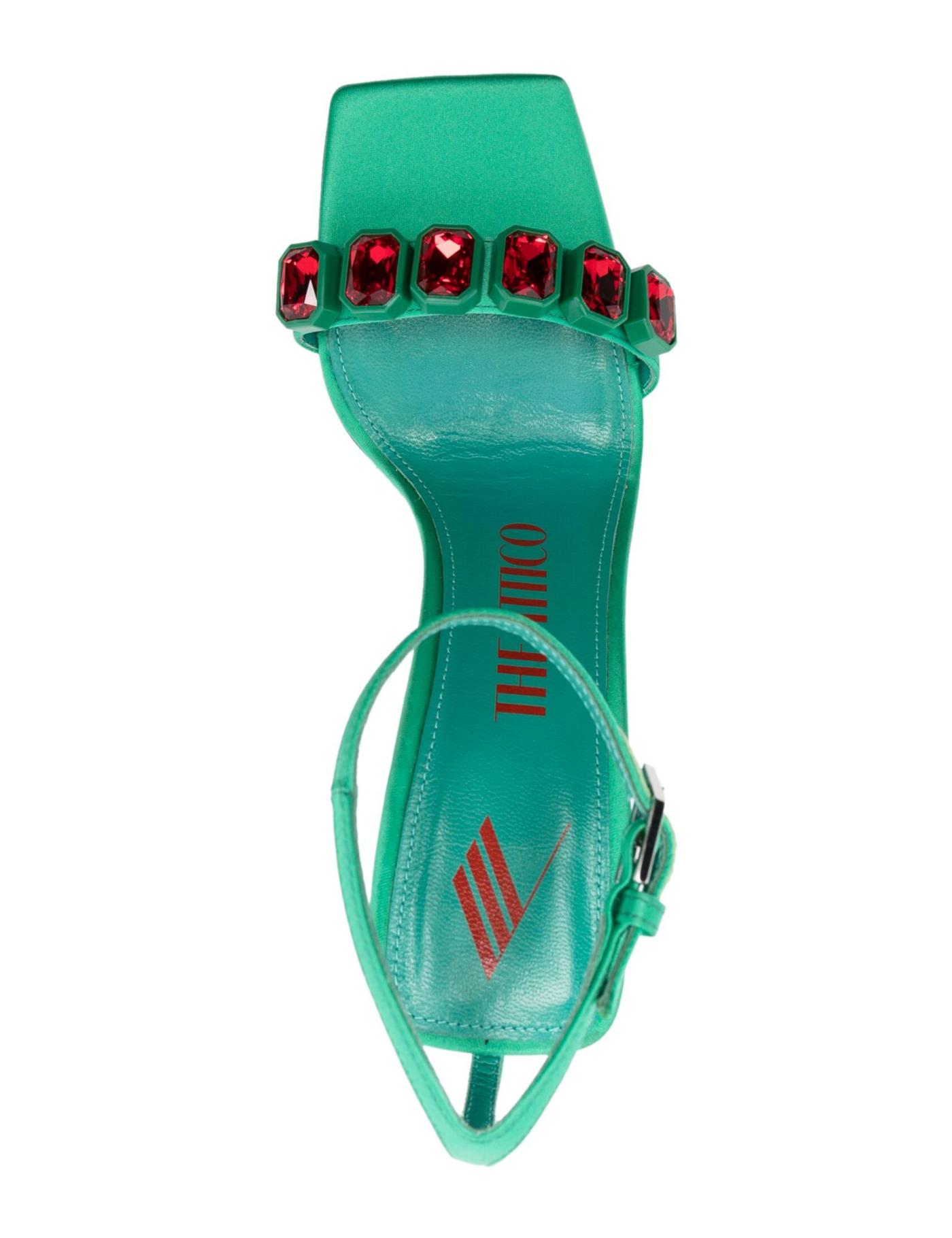 These sandals from The Attico are updated with in a striking green colourway. Set on a high stiletto heel, this pair features crystal embellishments along the front strap and a sleek open square toe.