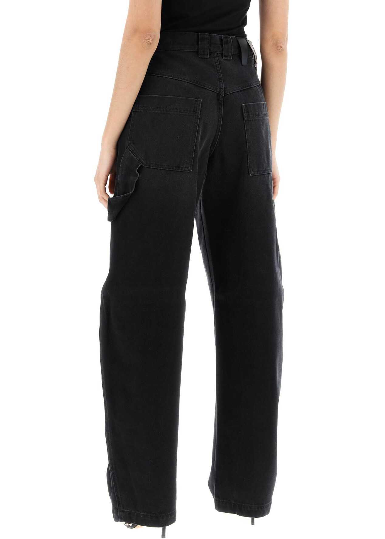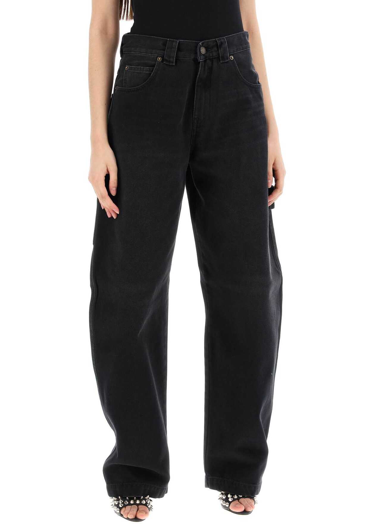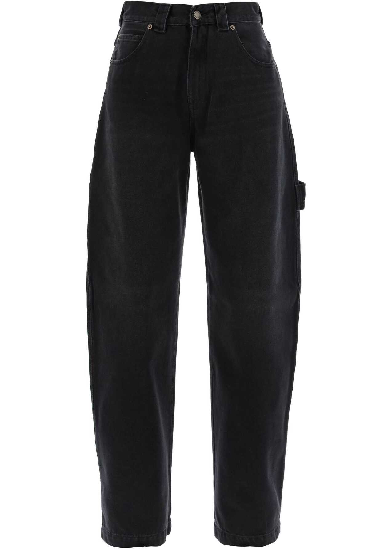 Darkpark jeans crafted in overdyed cotton denim, with cargo design characterized by workwear pockets and hammer loop on the legs. Five-pocket model featuring front zipper-fly and button closure, belt loops and leather jacron on the back of the waist. Baggy fit with curved leg. The model is 177 cm tall and wears size 26.