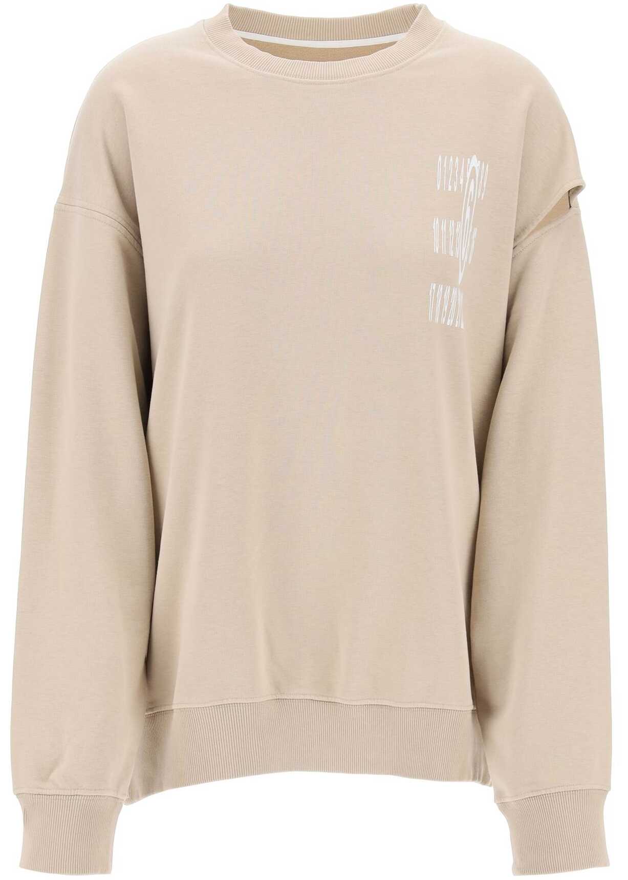 This MM6 Maison Margiela crewneck sweatshirt is made of brushed cotton blend jersey and features cutouts on the sleeves and the iconic elongated numerical logo printed on the front. Ribbed edges and the signature white stitching on the back complete the look. Relaxed fit. Model is 177 cm tall and wears size S.