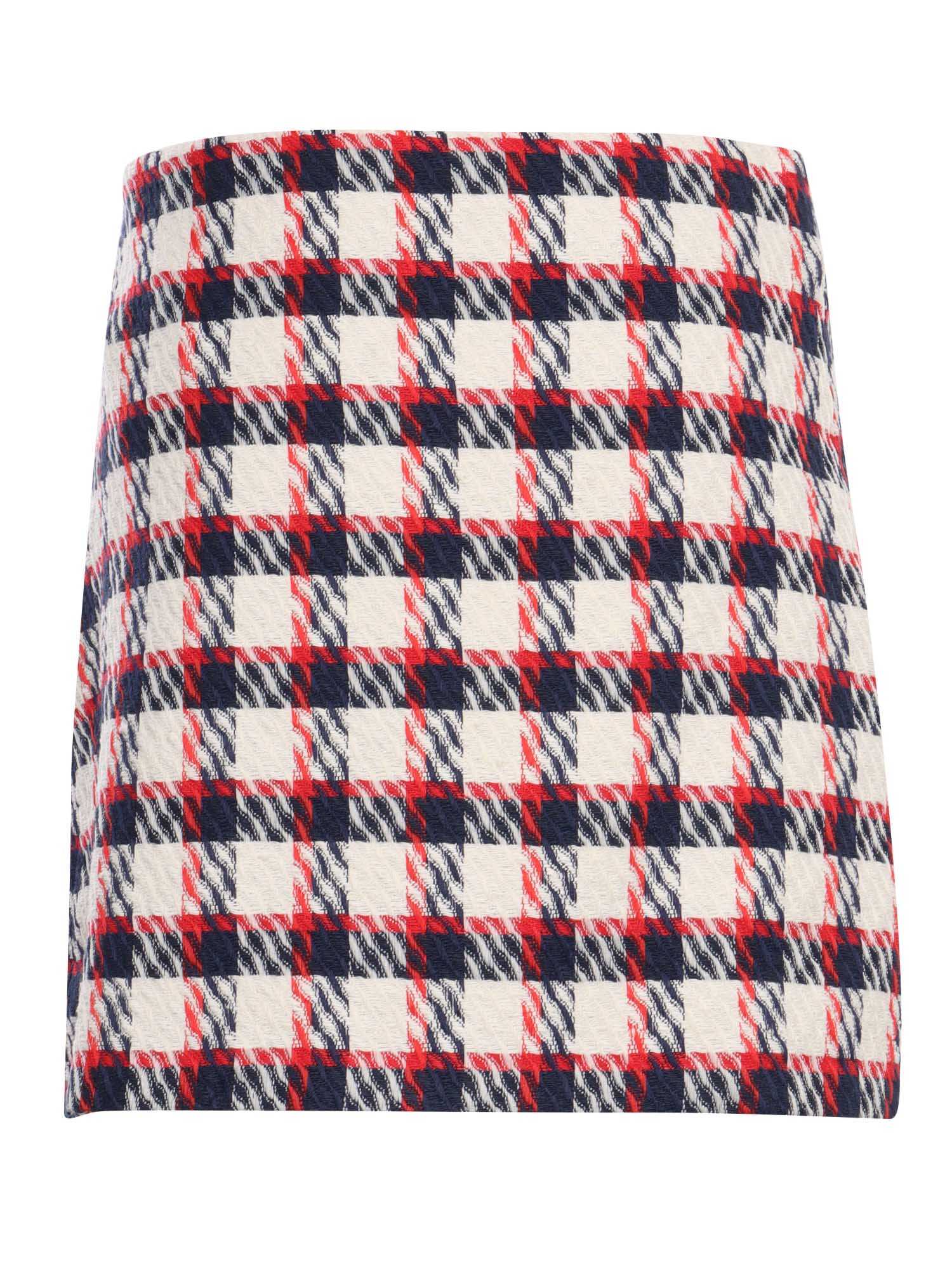 Little girl's skirt in tartan patterned tweed, front golden buttons.