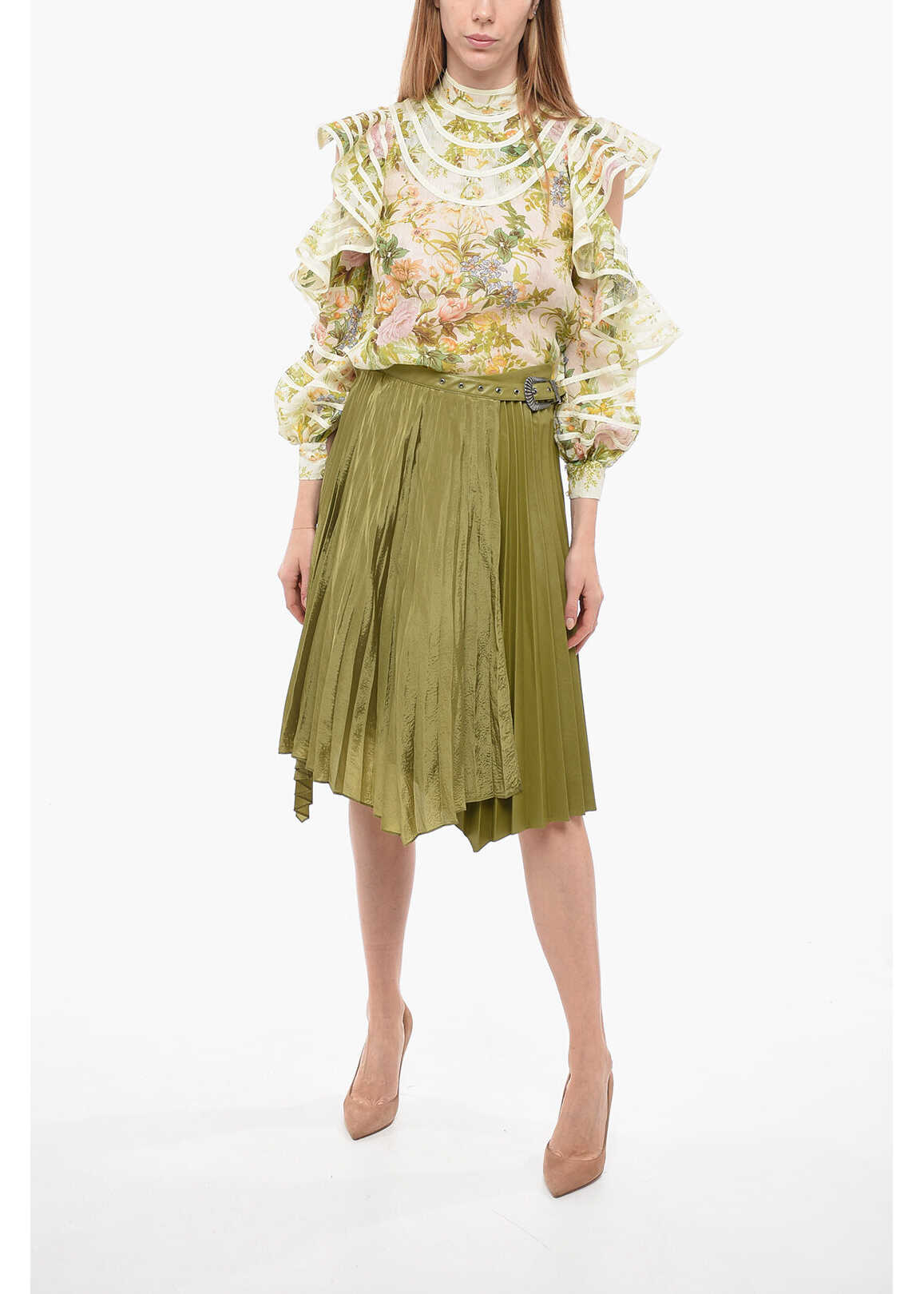 Faux Leather Pleated Skirt With Silver-Tone Buckle