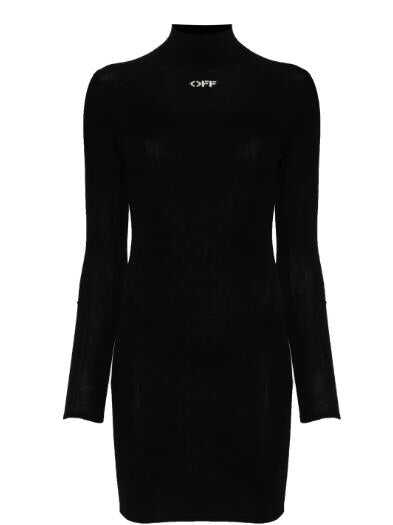 black knitted construction ribbed detailing embroidered logo high neck long sleeves straight hem