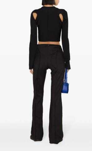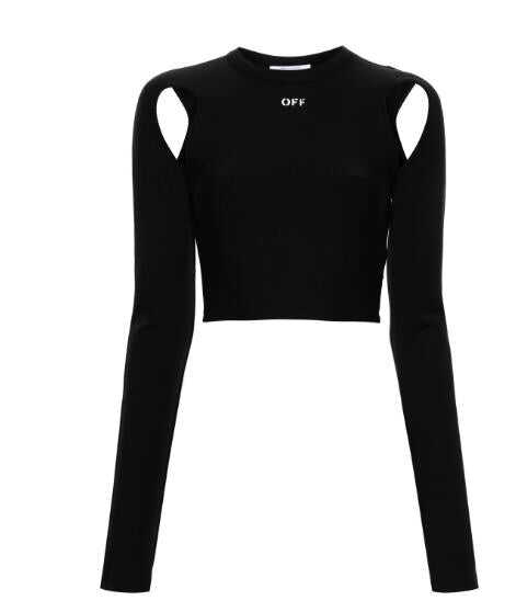 black scuba jersey stretch-design crew neck long sleeves cut-out detailing logo print to the front cropped straight hem