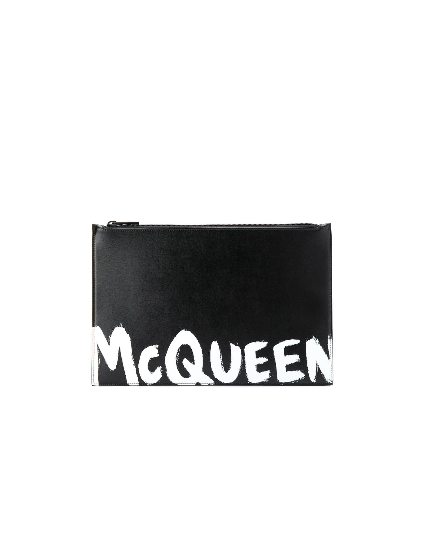 Ever dreamt of a bag that just screams McQueen? Well, this black leather contrast logo print clutch from Alexander McQueen is here to show you that dreams do come true. Forget faith, trust and pixie dust - true dreams are made of craft ales, brunch and a black leather clutch. Featuring a top zip closure and a contrast lettered logo to the front. HEIGHT: 21.0 Centimetres WIDTH: 31.0 Centimetres