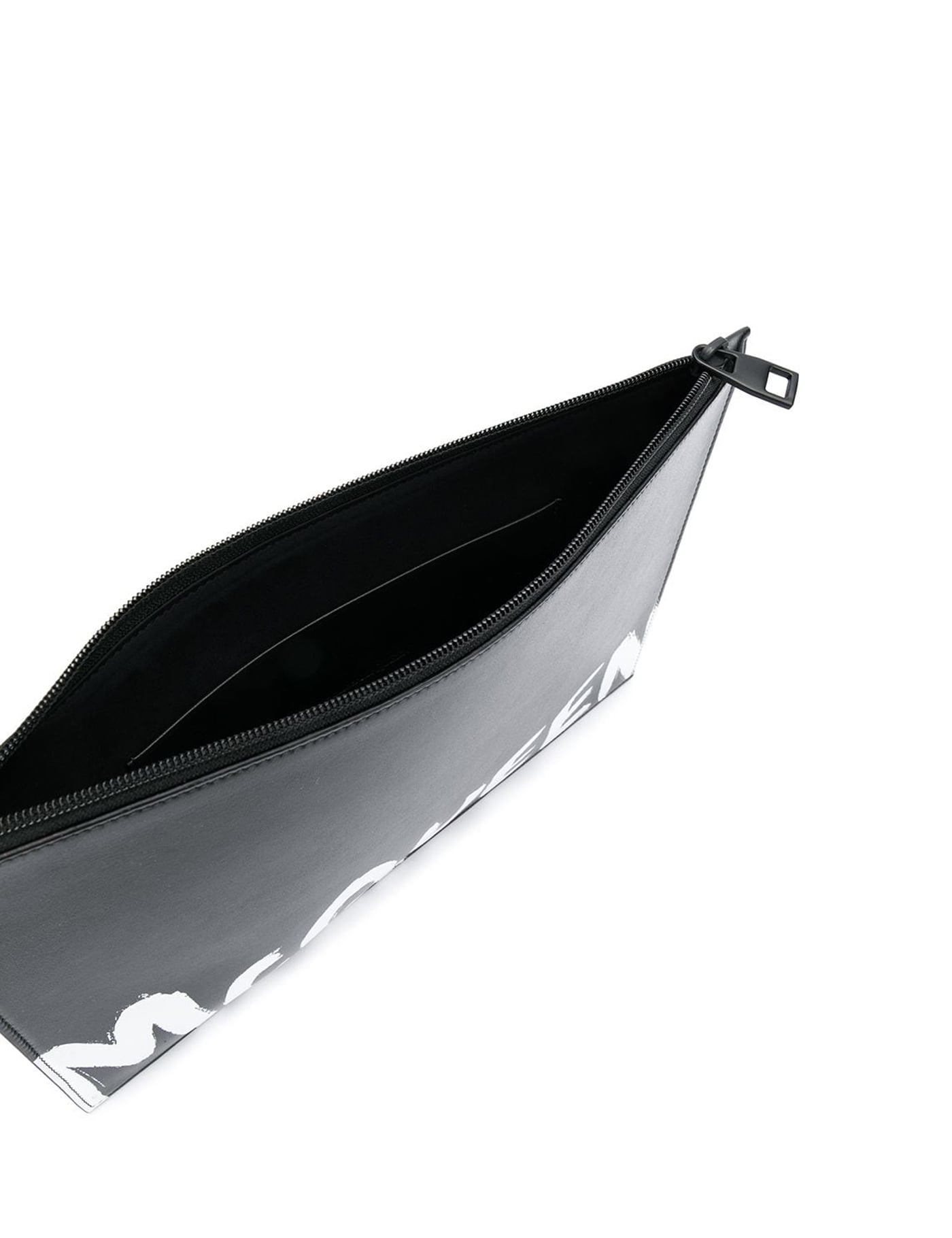 Alexander McQueen contrast logo-print geanta de mana neagra