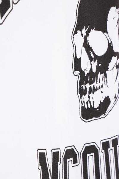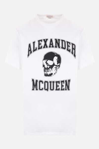 Alexander McQueen's t-shirt crafted in white cotton jersey with Varsity logo and Skull printed at chest. Featuring crew neck, short sleeves and straight hem.